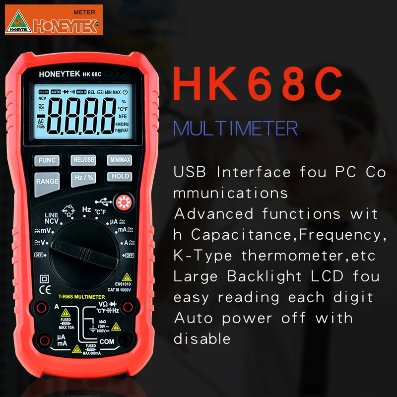 Температура:-4 ℉ ~ 1382 ±(2.0% + 3)