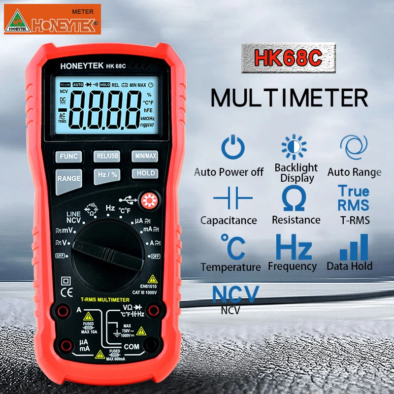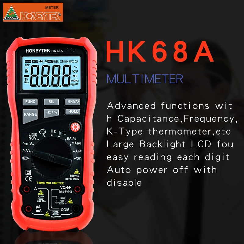 Ток переменного тока: 200uA ~ 20A ±(1.5% + 8)