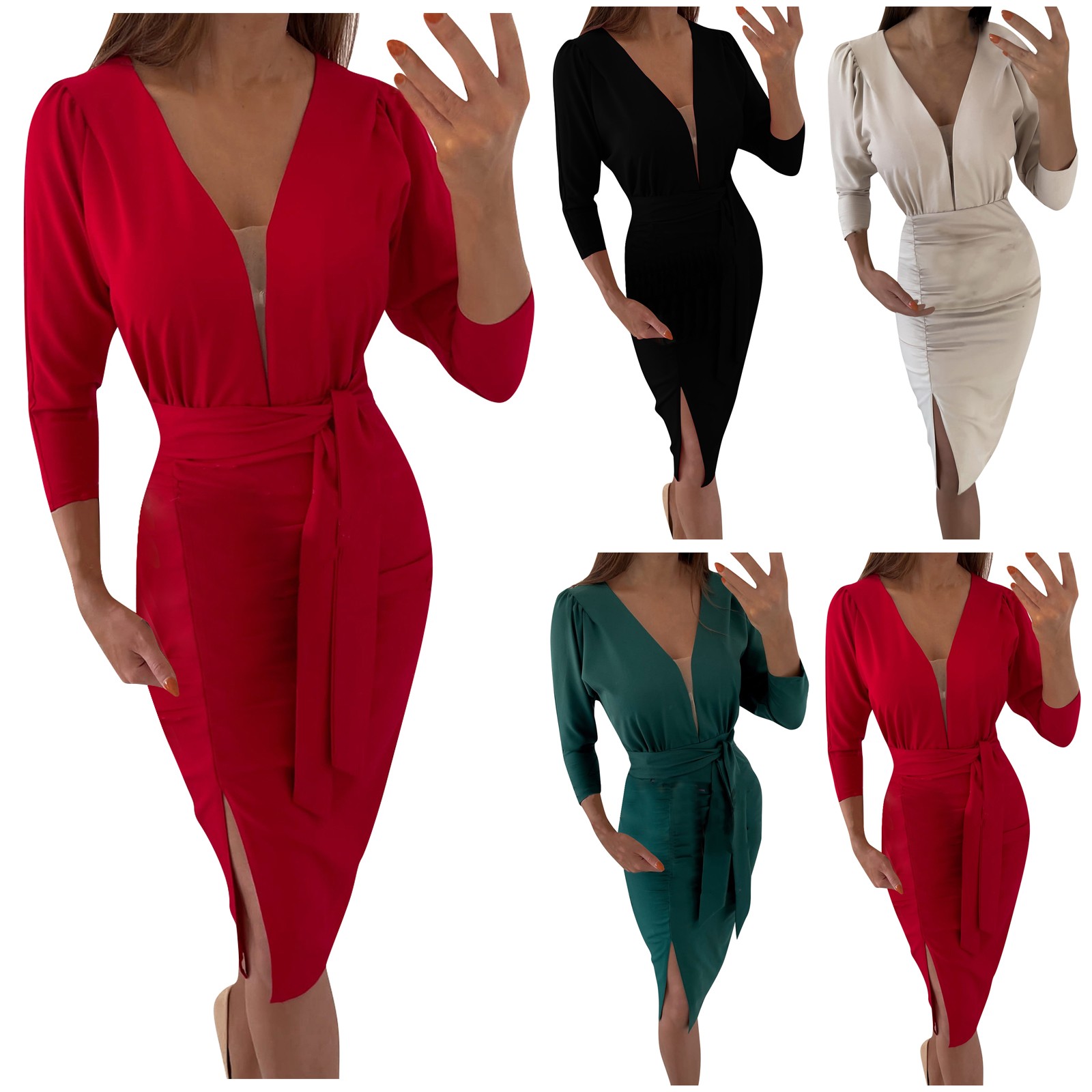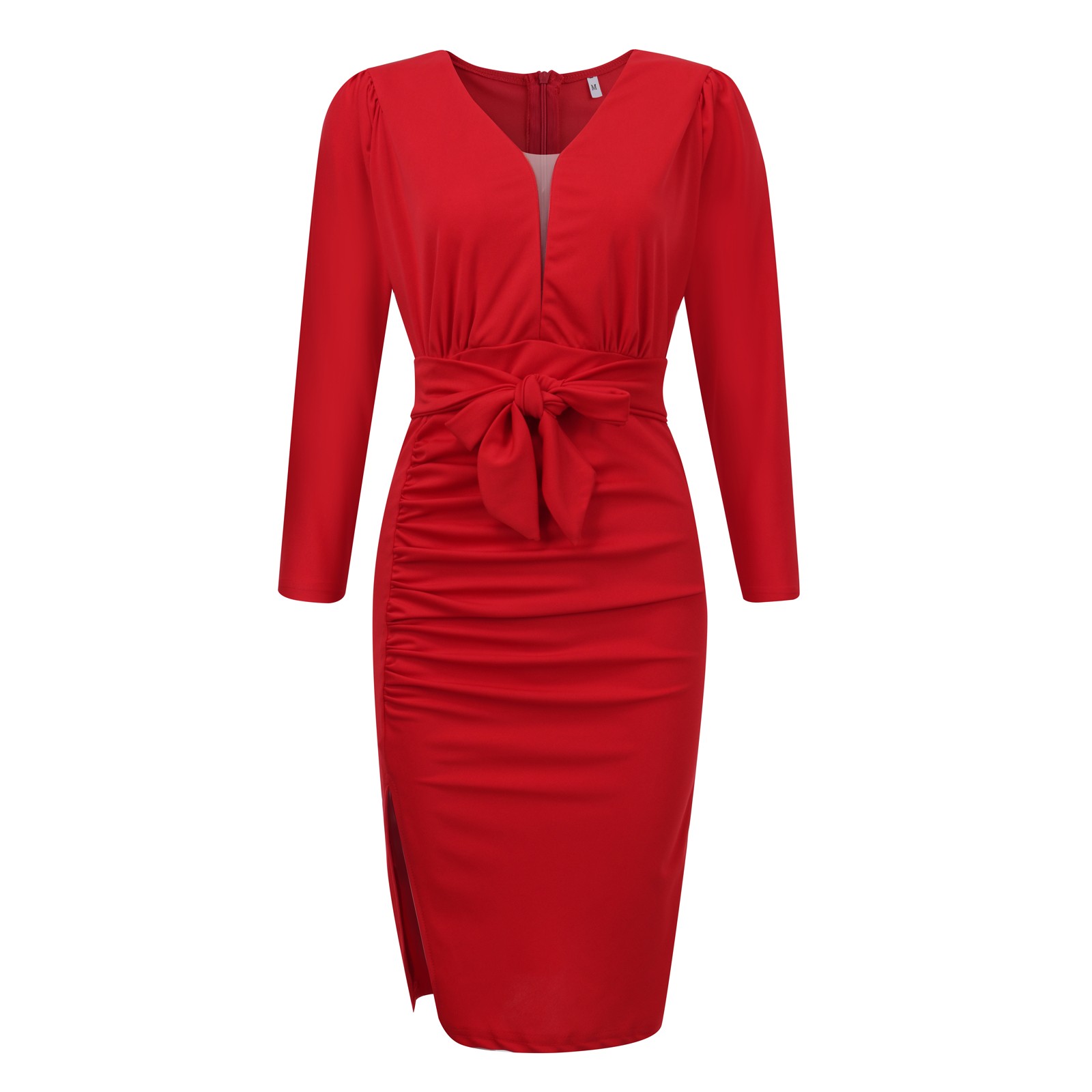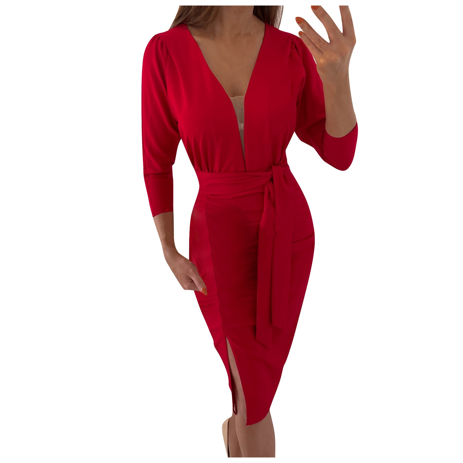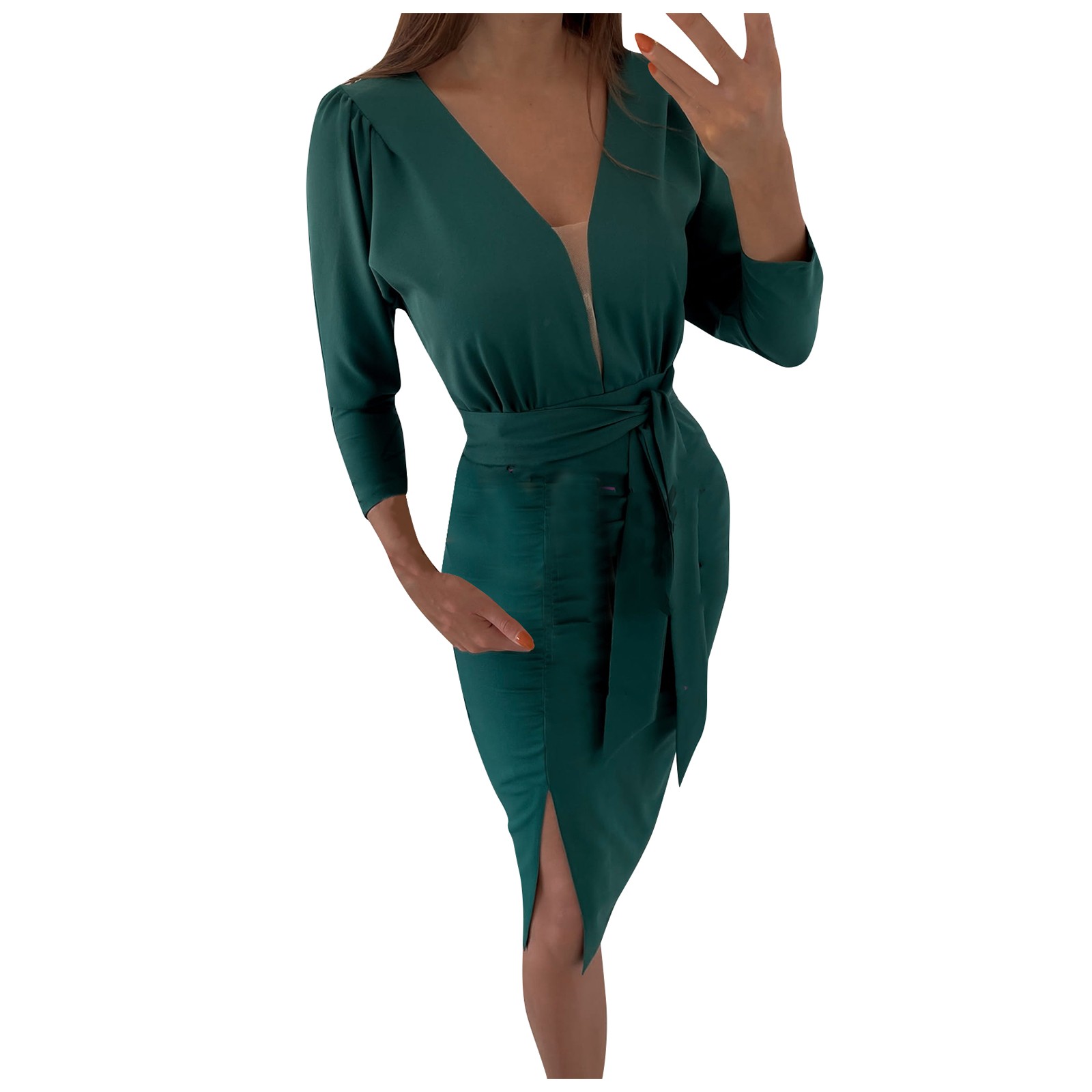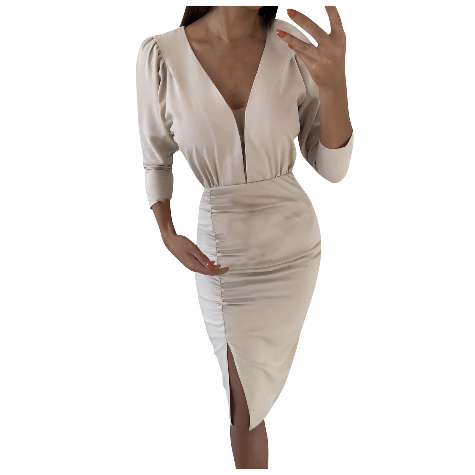 Женское модное облегающее платье с длинным рукавом и v-образным вырезом