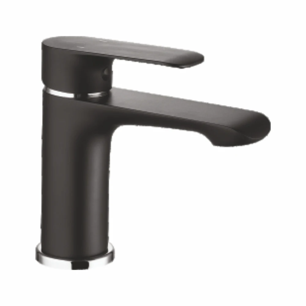 Смеситель для раковины однорычажный из силумина в современном стиле с глянцевой поверхностью, черного цвета.