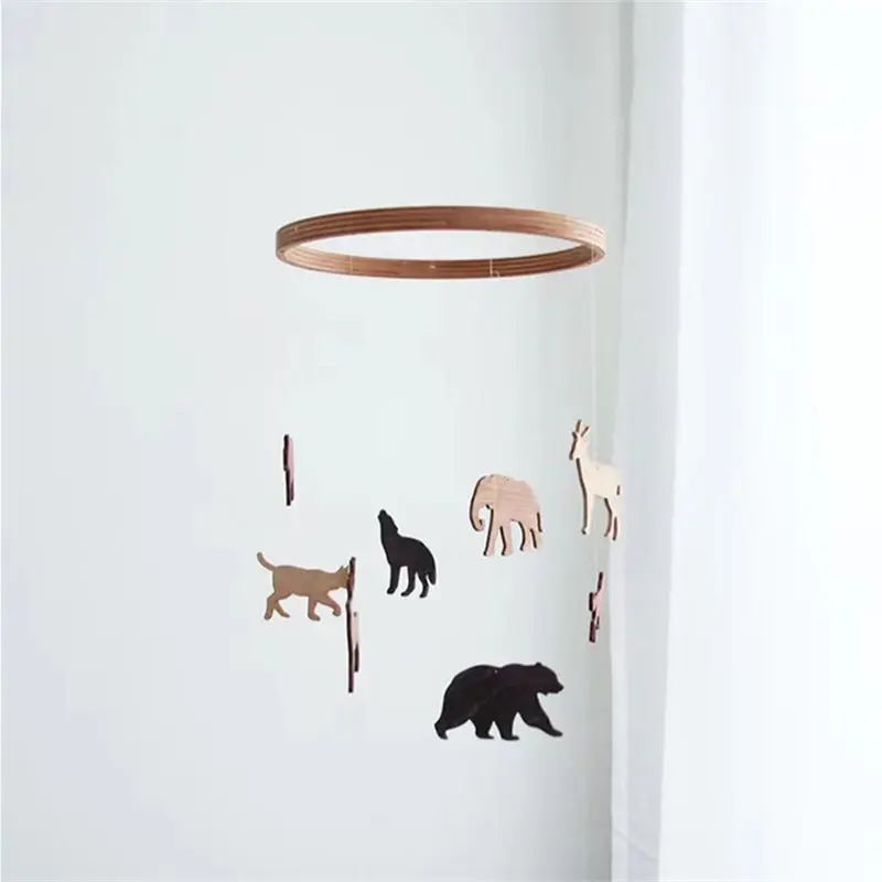 INS скандинавские деревянные колокольчики в виде животных для новорожденных, детская кровать, подвесная ветряная погремушка для детской кроватки, украшение для детской комнаты, игрушка с орнаментом, реквизит для фотосессии25