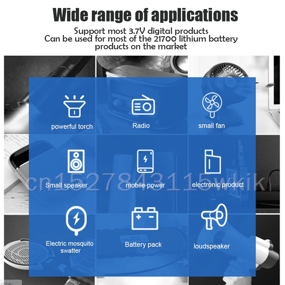 Широко используется на фонарь, Дополнительный внешний аккумулятор, широкий динамический диапазон, микрофон, радио, геймпад, лазерная указка, флеш, светильник, налобный фонарь, камеры, «История игрушек» дистанционный пульт, мини-вентилятор, портативный принтер, аварийный светильник, локальные телефоны, портативный DVD, инструмент, аудио оборудование, Воздушная модель и другие электронные устройства, которые нуждаются в ячейках NCR21700T.