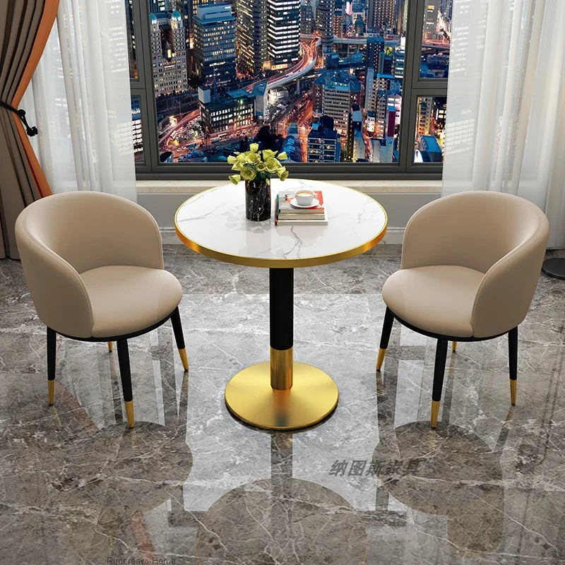 Simple and modern one table and two chairs light luxury dining chair with backrest