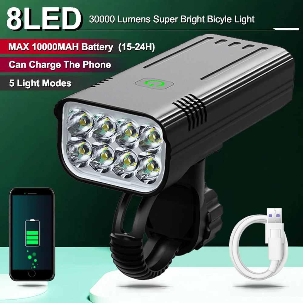 Оснащен модернизированными супер яркими лампами T6, высокими люменами. Это не только велосипедный светильник, но и портативный или карманный светильник.