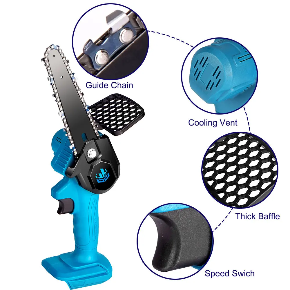 6 дюймов Электрическая цепная пила. С Перезаряжаемые литий Батарея с индикатором. Мини Беспроводная садовая регистрации пила. Резьба по дереву Мощность инструмент