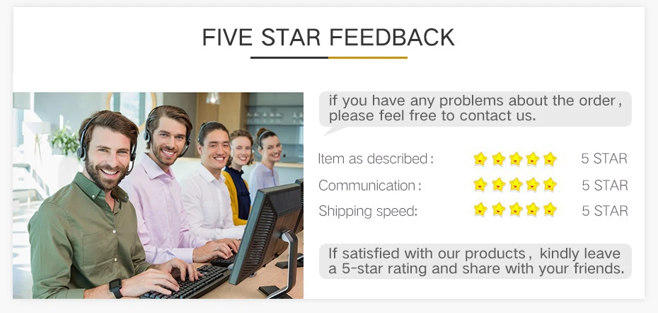 Мы поддерживаем высокие стандарты качества и стремимся к 100% удовлетворенности клиентов! Отзывы очень важны. Мы просим Вас связаться с нами немедленно, прежде чем дать нам нейтральные или отрицательные отзывы, чтобы мы могли удовлетворительно решить ваши проблемы. Невозможно решить проблемы, если мы о них не знаем!