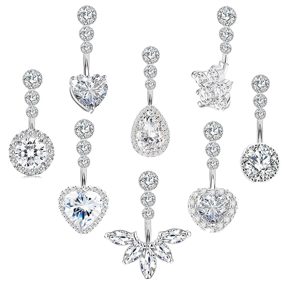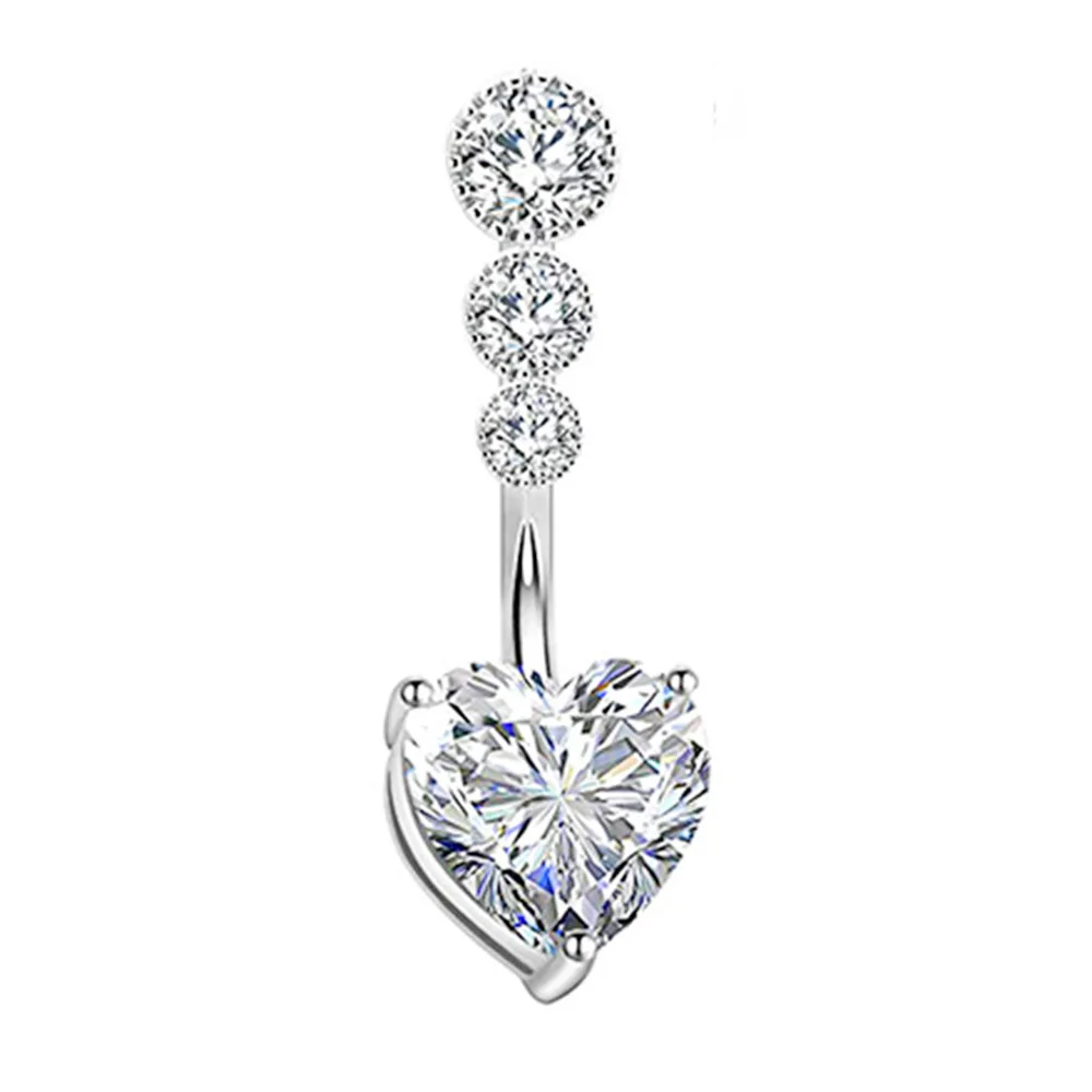 1 шт., Женское кольцо в форме сердца, 14 г, с крыльями цветов, Круглый пупок, ювелирное изделие из нержавеющей стали, прозрачные кубические циркониевые кольца для живота, пирсинг, серьги