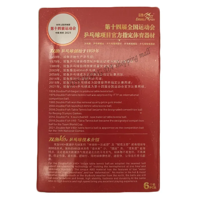 Для двойной рыбы V40 + Волейбольный мяч для настольного тенниса, мы внедрили технологию производства патента на сварные шарики «формовка полусферы в одно время» и «Точная инъекция» уникальный материал ABS имеет особенности низкого «поглощения воды», высокая «округлость» и «низкая» деформация. Независимо от жаркой и влажной погоды с юга или сухой и холодной погоды с Северной, шарики все еще не легко деформируется и ломается, высокая стабильность, быстрота и долговечность. В то же время его высокий отскок и высокая скорость приносят вам отличный опыт игры.