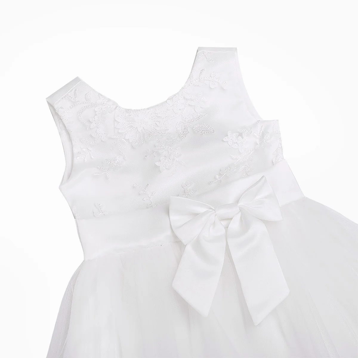 Лиф Без рукавов с вышивкой украшен объемными цветами. Дизайн с высокой талией и прошитым бантом. Спинка с пуговицами для удобного одевания, Пояс завязывается сзади.