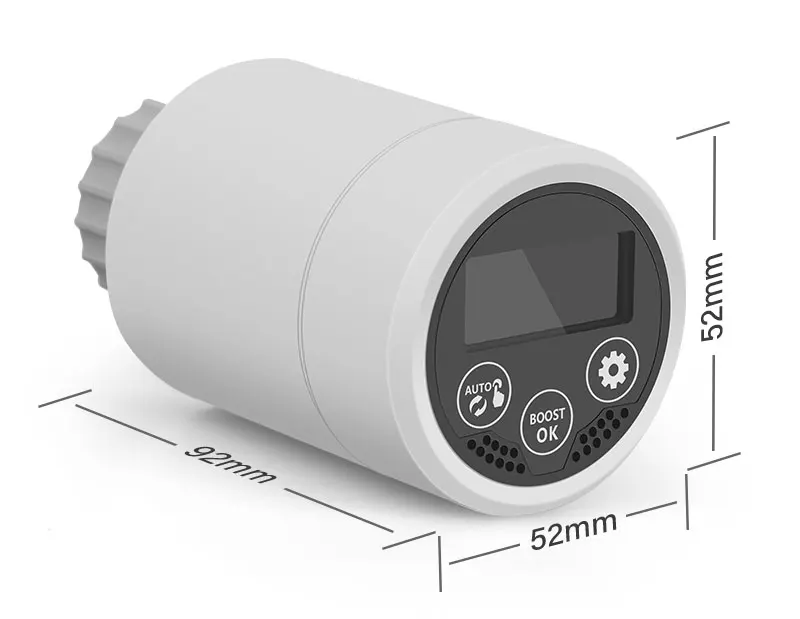 1. Термостат привода радиатора Smart Tuya ZigBee: Новый мини-дизайн с простым и четким ЖК-экраном на корпусе, термостат радиатора с ЖК-дисплеем и двумя секциями батарей, который является специальным клапаном, использующим вместе с нагревательным радиатором. Искусственно устанавливаемая температура в помещении, В основном используется в напольной системе отопления для контроля закрытия и открытия трубы.