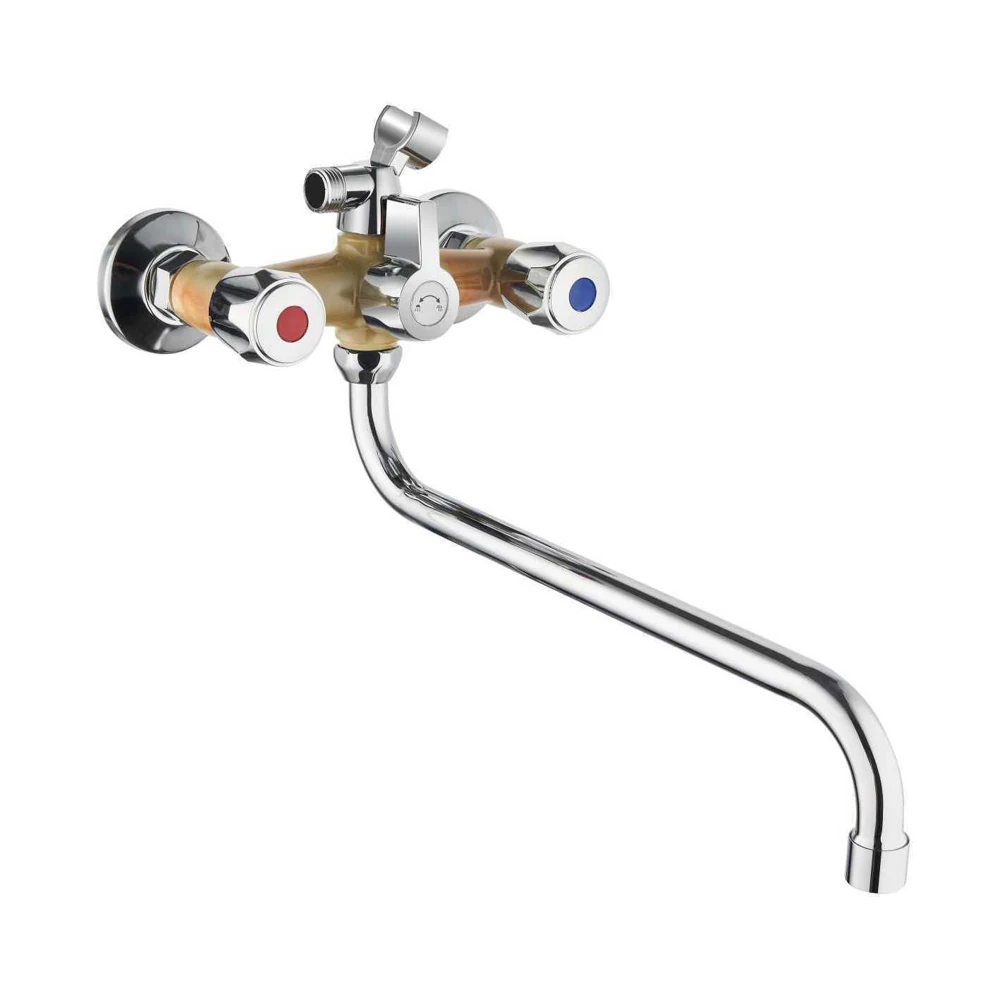 Двухвентильный смеситель выполнен из высококачественного ABS пластика с хромированным покрытием. Цвет: хром со вставками белого цвета. Подойдет для раковины, для кухонной мойки, умывальника, для ванной комнаты.