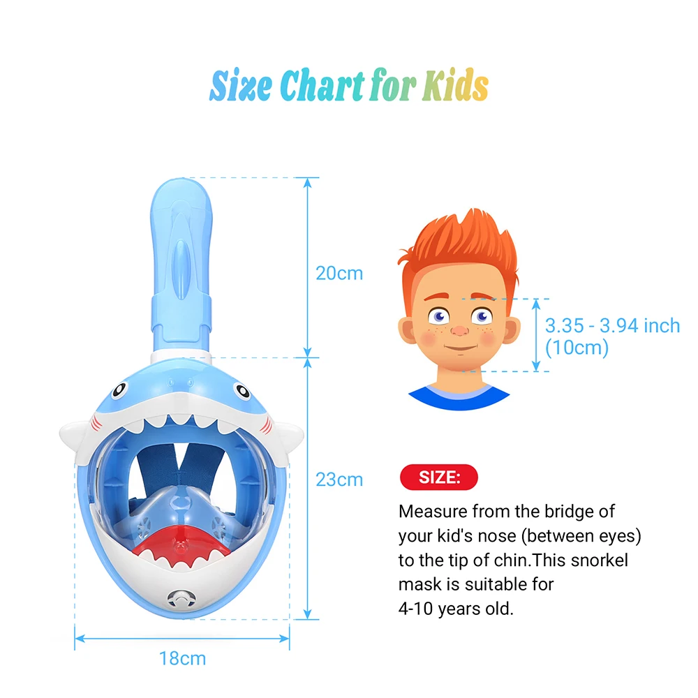 -Наша маска для подводного плавания для лица устраняет проблему запотевания маски во время дайвинга. Мы максимизируем подводное плавание благодаря отдельной дышащей камере, которая создает поток воздуха вдали от вашего основного смотрового козырька, который помогает устранить запотевание маски, в то время как ваш ребенок может держать подводное плавание в течение более длительного периода.