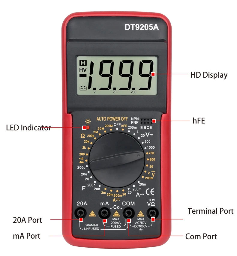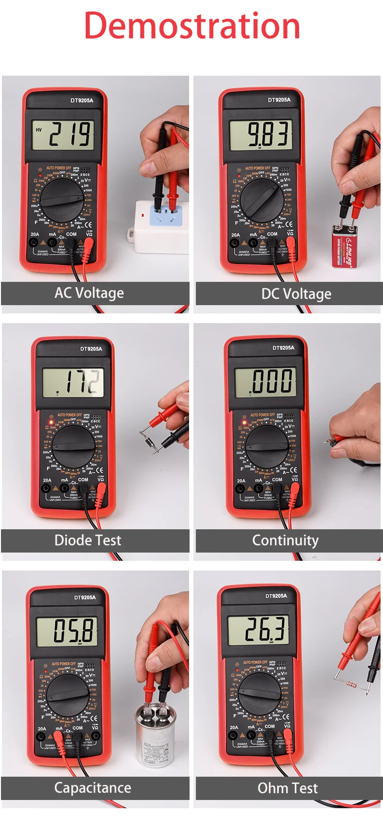 Мультиметр Цифровой DT9205 Профессиональный электрик инструменты AC DC диод вольтметра непрерывность конденсатор транзисторный тестер Multimetro
