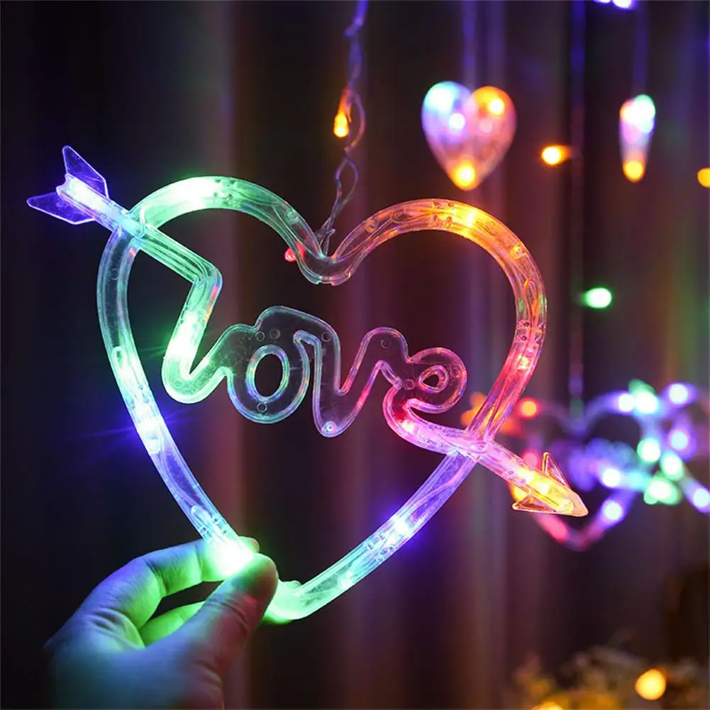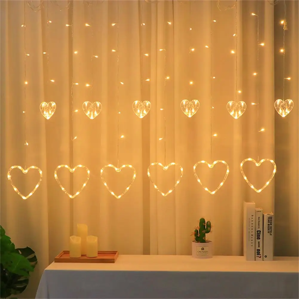 1. Подробная информация о занавес светильник в форме сердца выглядит следующим образом: ширина: 8,2 футов, Количество светодиодов: 138 светодиодов. Количество сердец: 6 больших и 6 маленьких, как показано на рис. 12.
