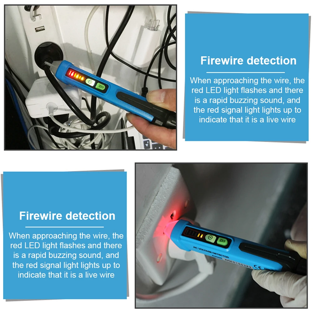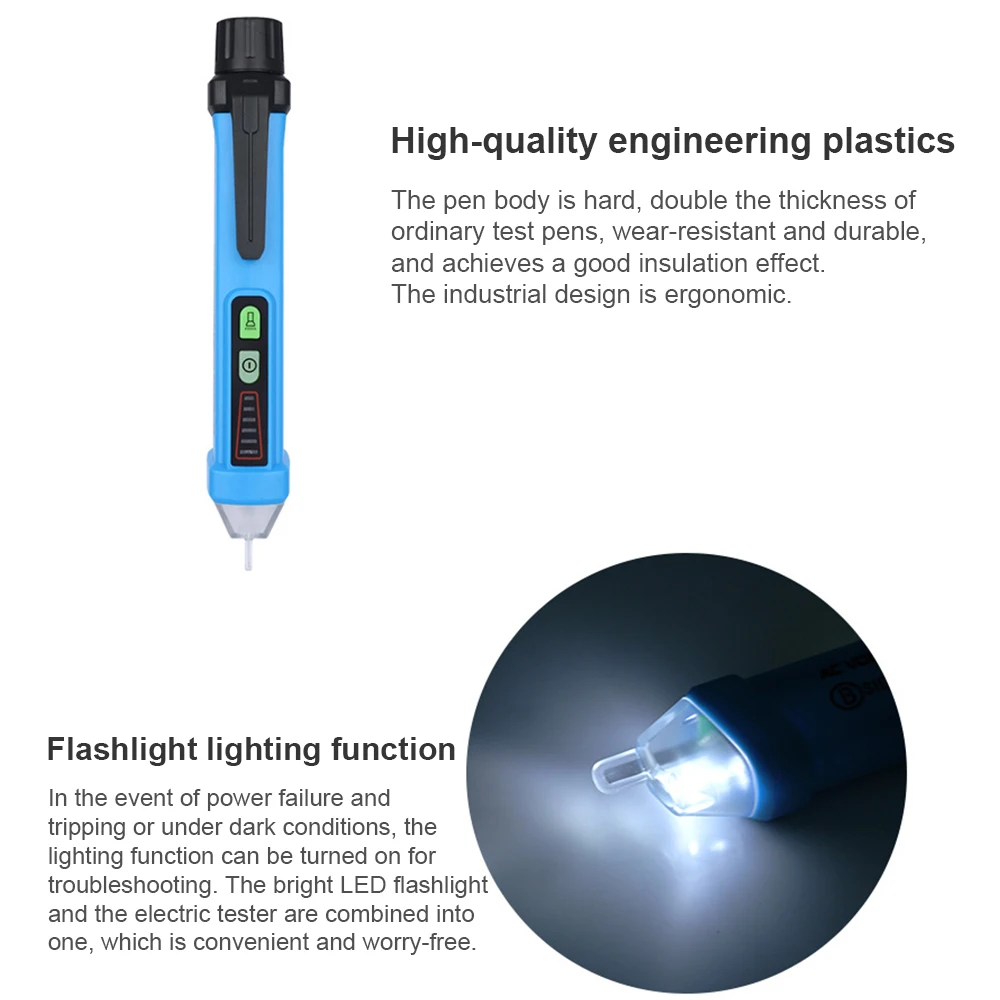 Описание: 1. Умная электрическая Ручка безопасности, автоматическая полоса чувствительности 2. Функция освещения фонарика: при отключении питания или в темных условиях, функция освещения может быть включена для устранения проблем, подсветки светодиодный фонарик и Электрический тестовый ручка в одном, Удобно и без беспокойства. 3. Корпус ручки жесткий, и его толщина в два раза выше, чем у обычных тестовых ручек. Износостойкий и прочный. В то же время он обеспечивает хороший изоляционный эффект. Промышленный дизайн эргономичный. 4. Обнаружение нулевой линии: когда электрическая ручка подключена к розетке, красный светодиодный светильник мигает, и происходит медленное звуковой сигнал, Описание-нулевая линия 5. Обнаружение провода в режиме реального времени: при приближении к проводу мигает красный светодиодный светильник, и происходит быстрое гудение. Красный Сигнальный светильник включен, что указывает на то, что он является живым проводом. Спецификация: Напряжение переменного тока: 12 ~ 1000ACV Частота: 50 Гц ~ 60 Гц Режим сигнализации: звуковой сигнал и светильник Фонарик: Белый светодиодный Нулевое значение пожарной линии: звук (звук с различными частотами кадров) и светодиодный индикатор Чувствительность NCV: автоматически выбирается 3 вида чувствительности (высокая, средняя, низкая) Метод индикации чувствительности NCV: измеритель показывает высокую и разную чувствительность через различные звуковые сигналы тревоги и различные цветовые светодиоды Рабочая температура: 0 ~ 40 градусов Температура хранения: -10 ~ 50 градусов Высота: <2000 м Мощность питания: 2*1,5 V AAA батареи (поставка без батареи) Особенности продукта: Автоматическое отключение: Когда счетчик не работает в течение трех минут и не обнаружено напряжение переменного тока, счетчик автоматически отключится. Индикация низкого напряжения: В тех случаях, когда напряжение батареи ниже примерно на 2,6 V Индикатор питания мигает 3 раза, чтобы дать сигнал тревоги, и зуммер звуковой сигнал после того, как автоматически выключается. Замените аккумулятор. Фонарик: Нажмите переключатель фонарика, чтобы включить фонарик, и нажмите переключатель снова, чтобы выключить фонарик. Если вы включите переключатель фонарика, он автоматически выключается через 5 минут. Посылка: Электрическая ручка * 1 Руководство * 1