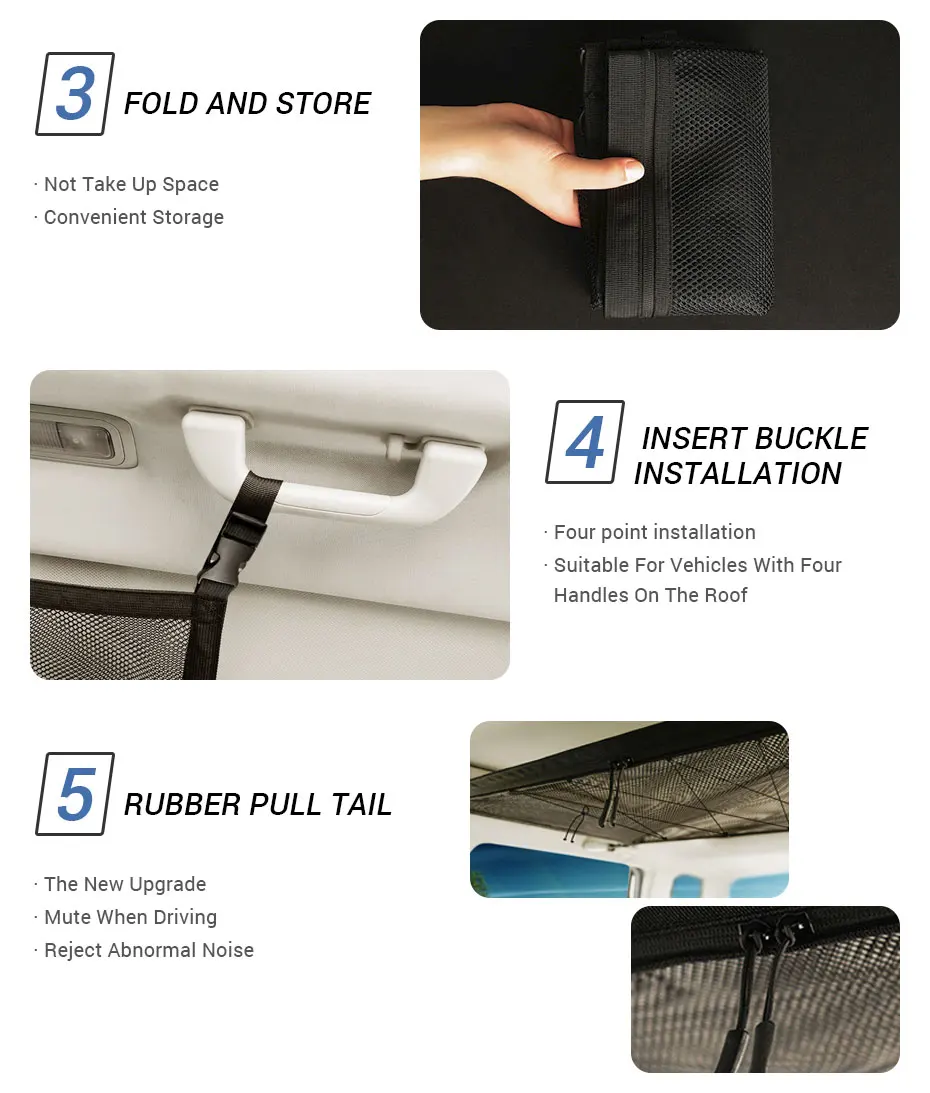 2. Экономьте пространство и удобство: Положите детские одеяла и игрушки, набитые животными или пуховые куртки и легкие ткани, которые вам нужны в любое время, в сетку для хранения грузов на потолке SUV, когда вам это нужно, вы будете под рукой! Вместо Ползания на задние сиденья и нахождения в багажнике.