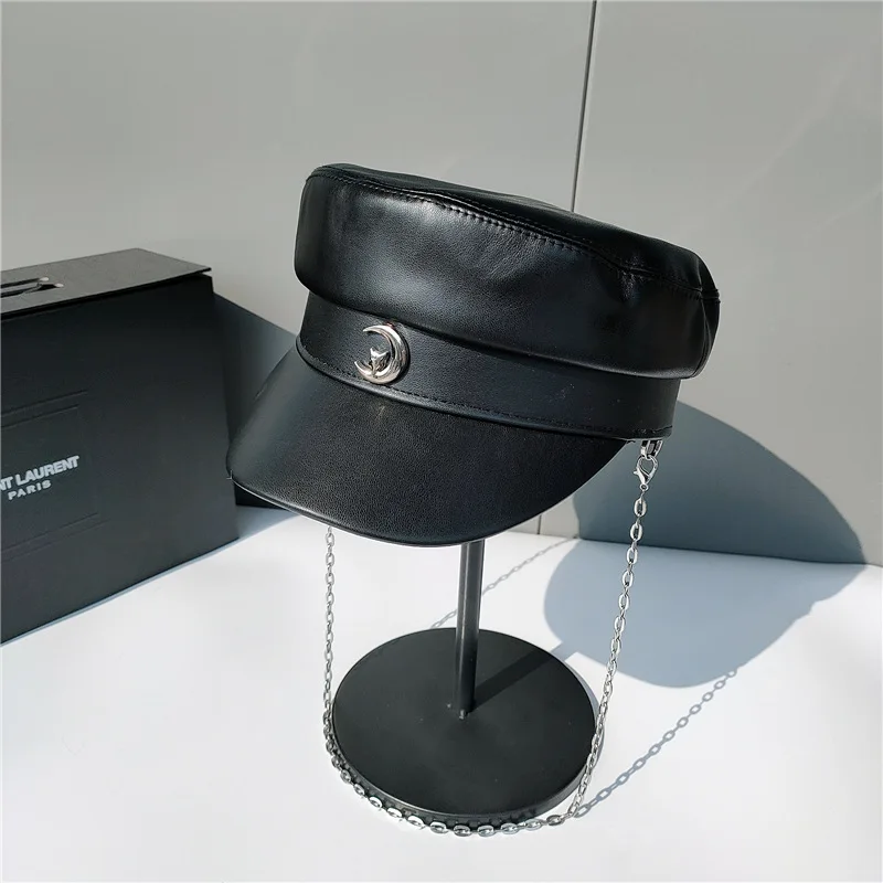 Модные Военные шапки для женщин из искусственной кожи, Матросская шапка, японская Ретро панк-цепочка, темно-синяя шапка, трендовая Кепка для путешествий