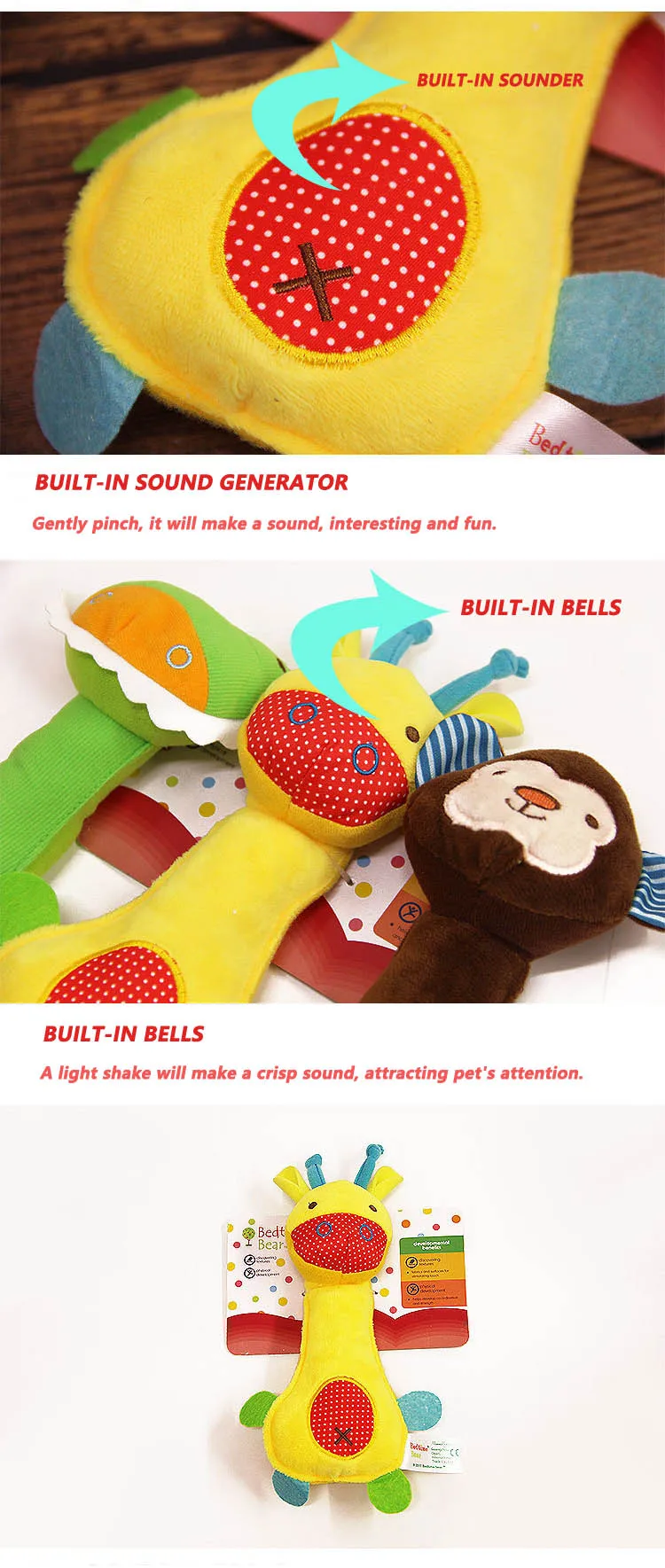 Характеристики продукта: Встроенный эхолот и колокольчик, колокольчик издаст звук, когда вы встряхнете его, и он сделает звук, когда вы прижмите его мягко. Незаменимая игрушка для домашних животных.