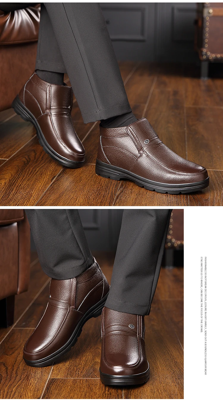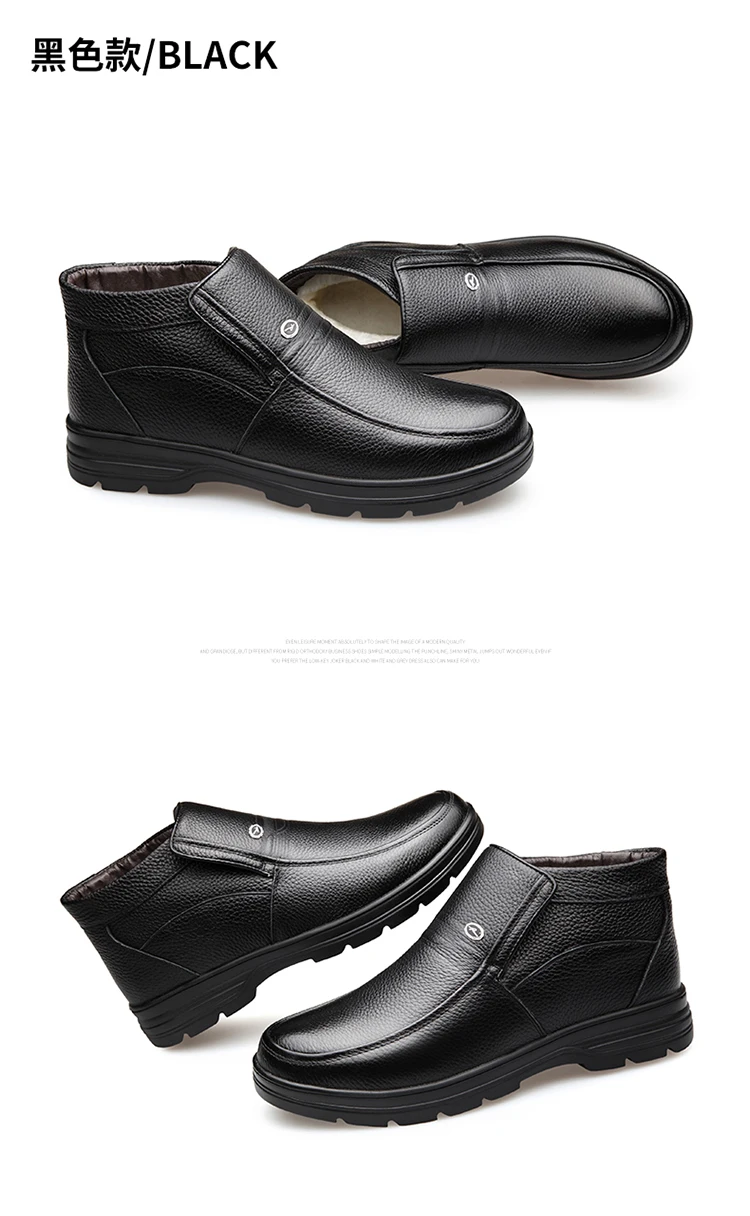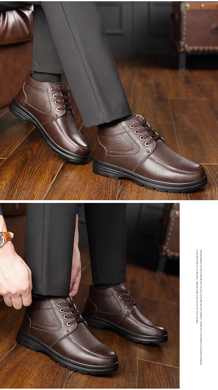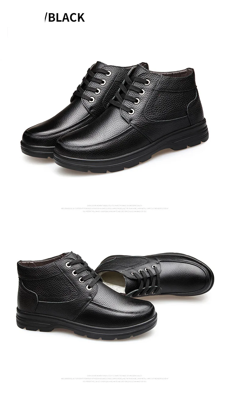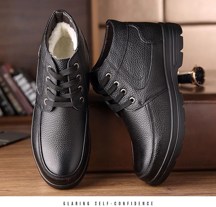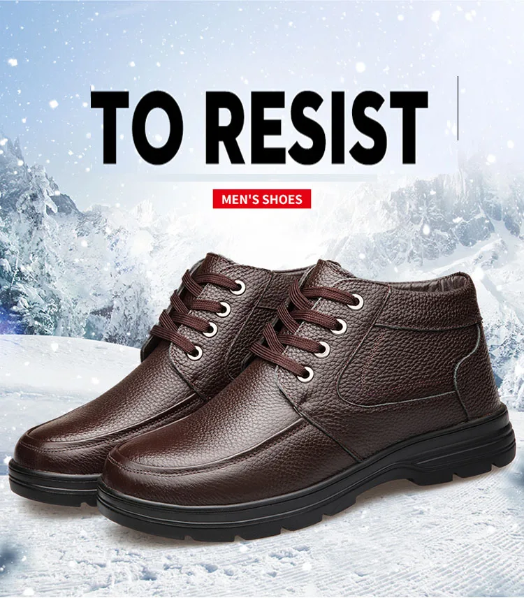 2021 г. Мужские кожаные зимние ботинки внутренняя шерсть Нескользящие ботильоны для отца продвижение 46 размеров, водонепроницаемые мужские зимние ботинки