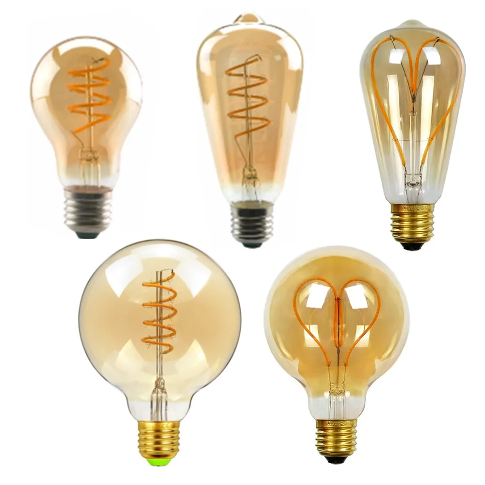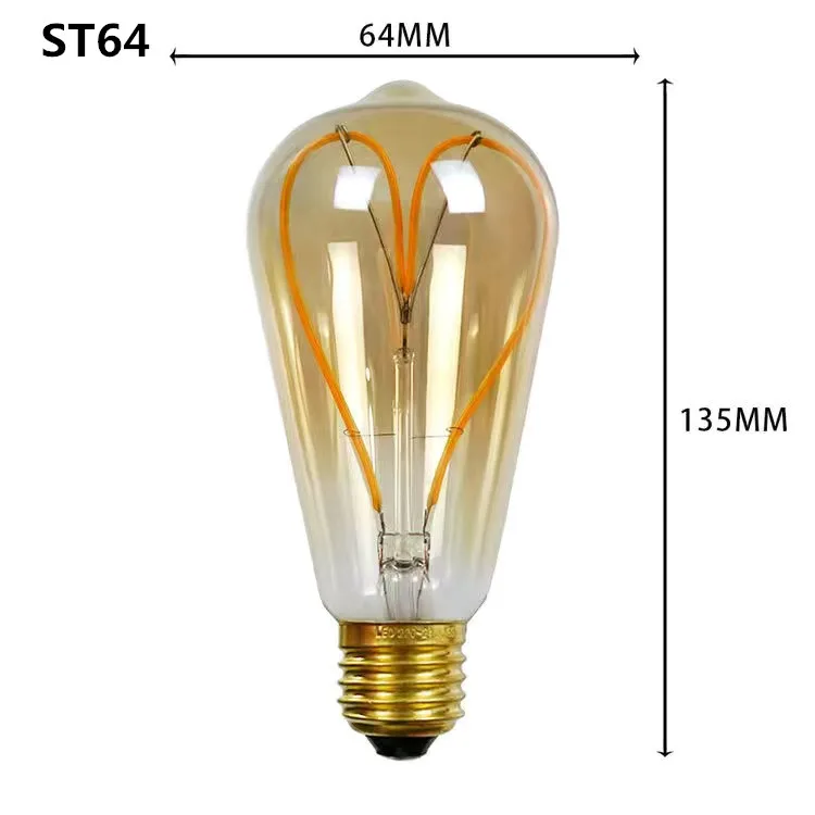 Модель:A60 ST64 G80 G95 G125 (цоколь E27) спиральная светодиодный лампа накаливания