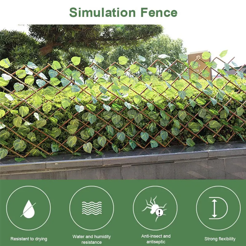 1. Высококачественные материалы: забор изготовлен из ивового дерева, а искусственные зеленые листья и лозы закреплены кабельными стяжками, прочные и не отпадают. Это очень реалистично и делает ваш сад полон зеленого и полного жизни.