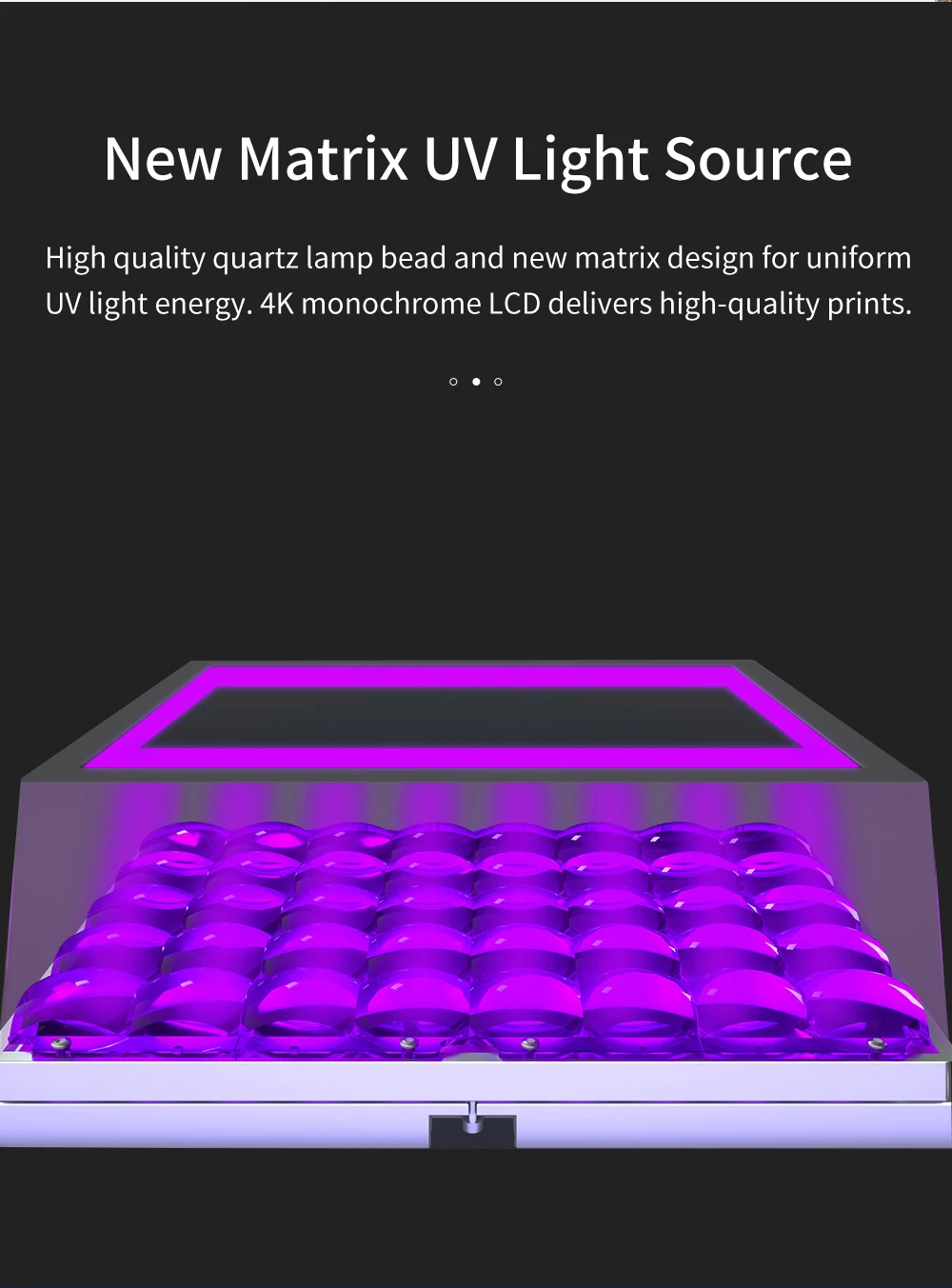 Высококачественная кварцевая лампа из бисера и новый матричный дизайн для равномерного УФ-светильник. Монохромный ЖК-дисплей 4K обеспечивает высокое качество печати.