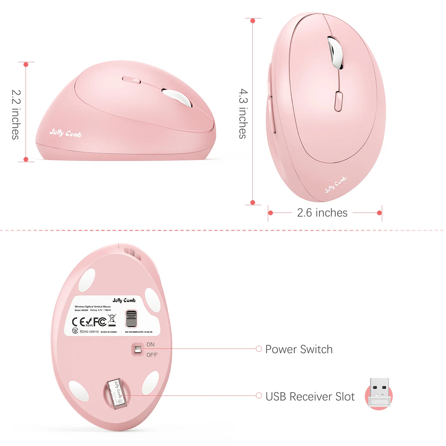 Бесшумная щелкающая мышь: с 3 регулируемыми значениями DPI: 1000-1600-2400, эта вертикальная мышь Бесшумная, гладкая, плавная и быстрая реакция. Кнопки вперед/назад позволяют вам более удобно просматривать веб-сайты. Примечание: кнопки вперед/назад не работают в системе MAC OS.