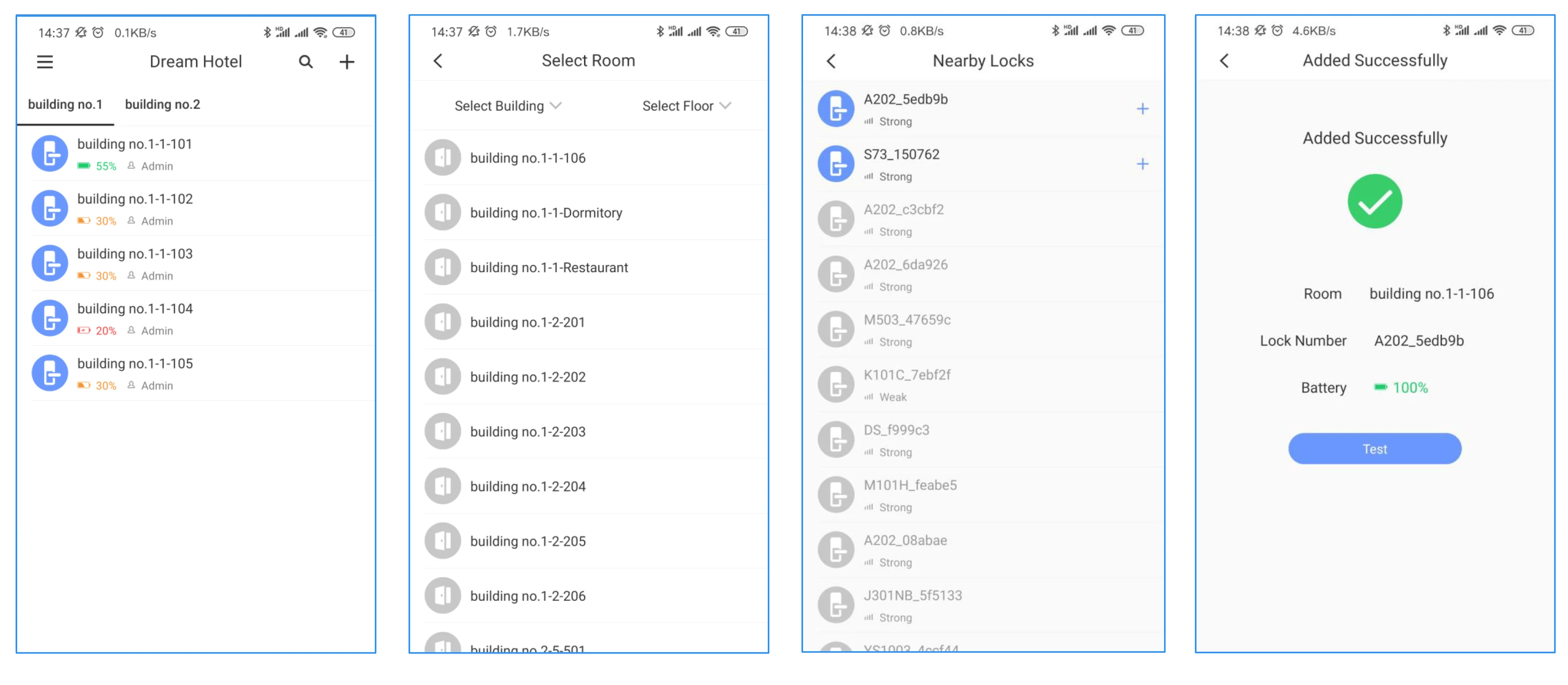 Статус блокировки «Addable», нажмите +, чтобы добавить его успешно после успешного добавления, нажмите +, чтобы проверить, может ли дверной замок использоваться нормально.