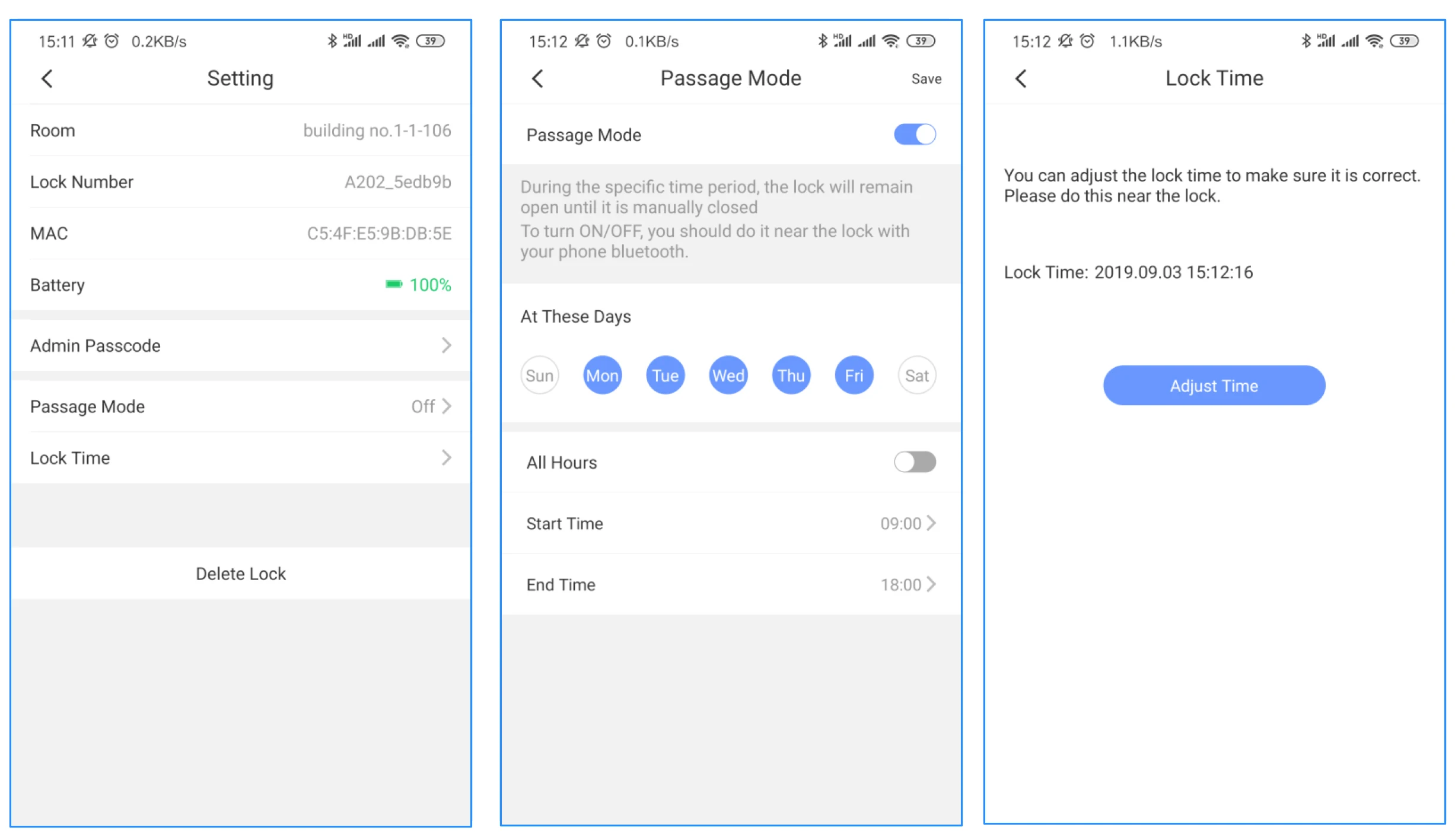 Нажмите [Setting], чтобы перейти на страницу настройки блокировки, вы можете просмотреть основную информацию о блокировке и откалибровать и обновить время блокировки и версию.