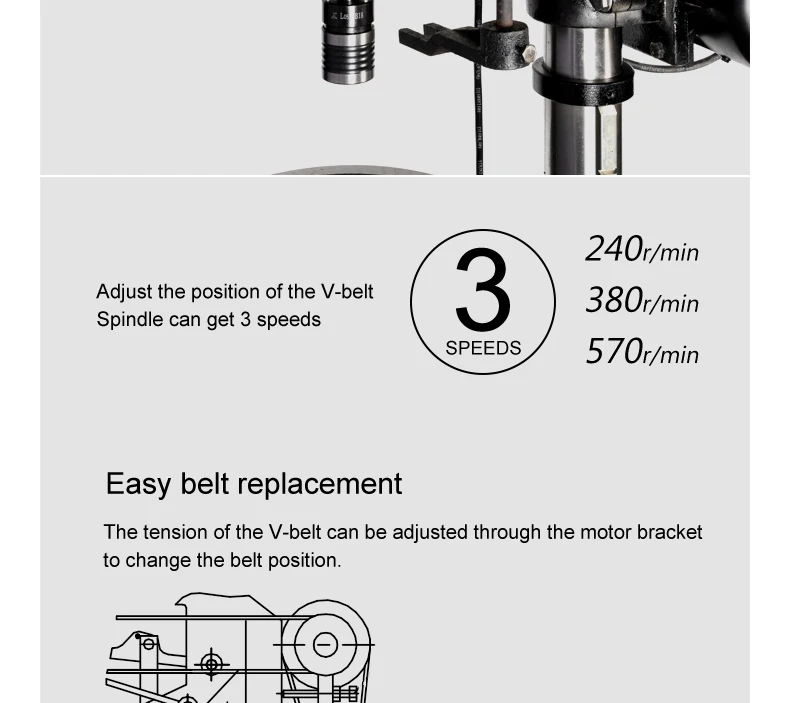 Spindle speed 240/380/570rpm