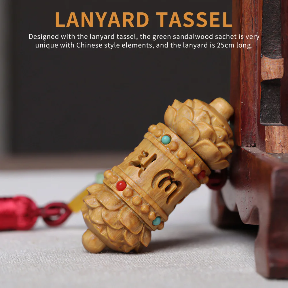 Разработанный с кисточкой на шнурке, зеленый Саше из сандалового дерева очень уникален с элементами в китайском стиле, а ремешок длиной 25 см.