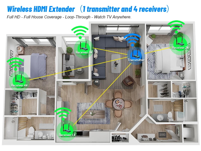 【 150М наружное расстояние】Беспроводной hdmi-удлинитель MiraBox HSV8113W 150m с ИК беспроводной передачей сигналов HDMI A/V до 150m через линию видимости; Рекомендация: церковь, бар, конференц-зал, дом.