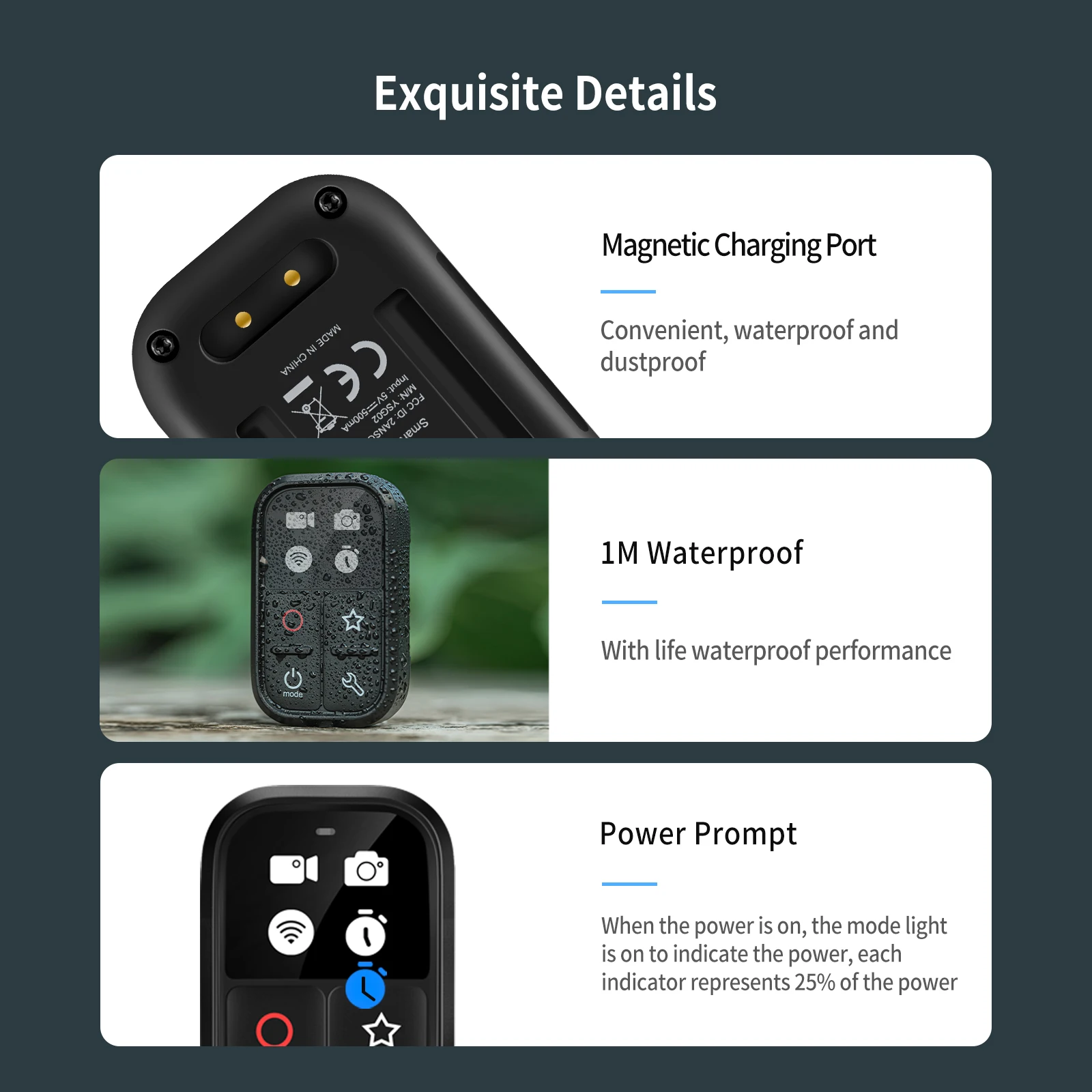 6. Magnetic suction charging port,waterproof and dustproof.