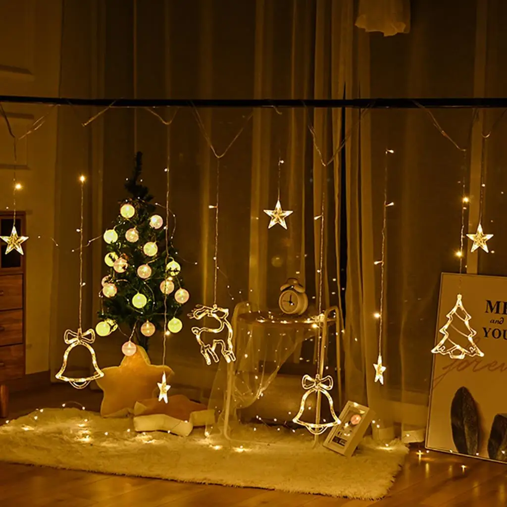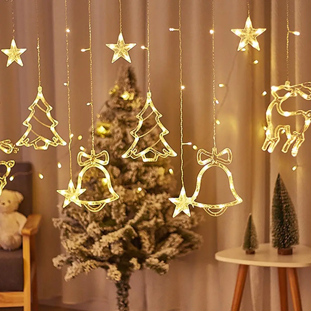 3.5M LED Christmas Deer Tree Bells Star String Fairy Lights Curtain Light Outdoor Garland For Home Party New Year Wedding Decor