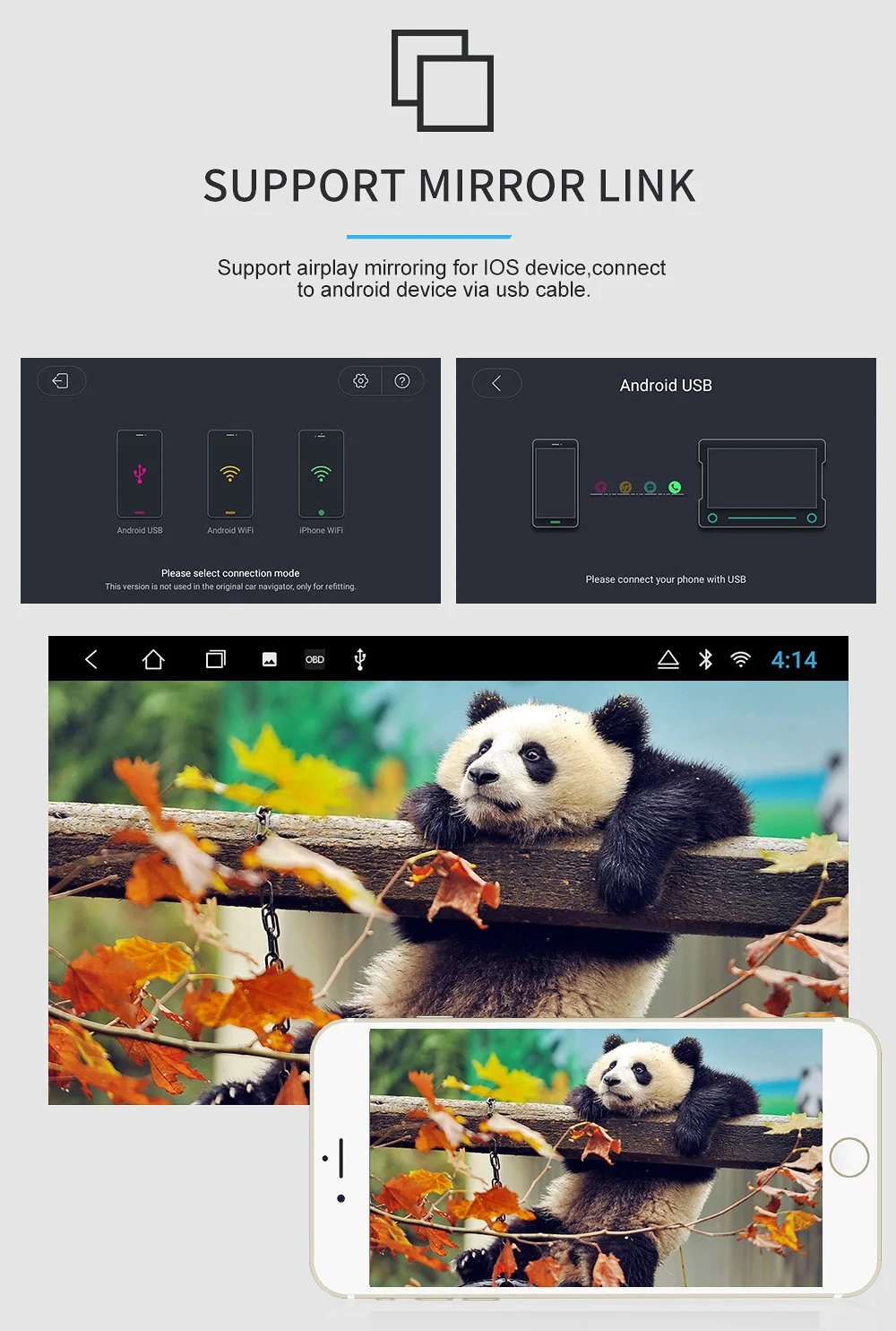 22:Зеркальное соединение: Поддержка (Android и Iphone поддерживает зеркальную связь)