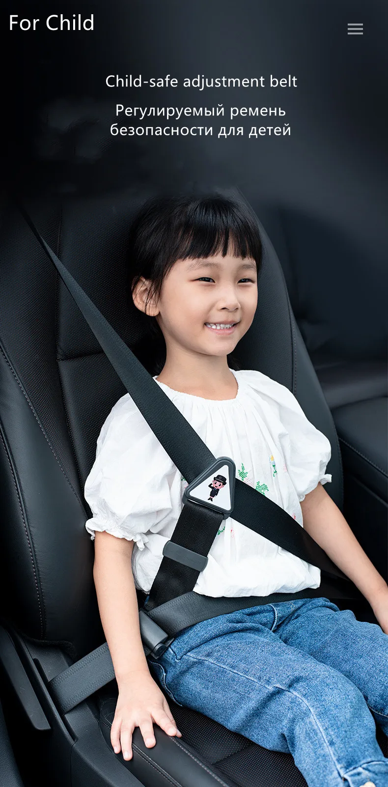 Функция: Этот автомобильный регулятор ремня безопасности, предназначенный для детей, может защитить безопасность езды ребенка, предотвратить Застревание шеи и исправить сидячую осанку ребенка.