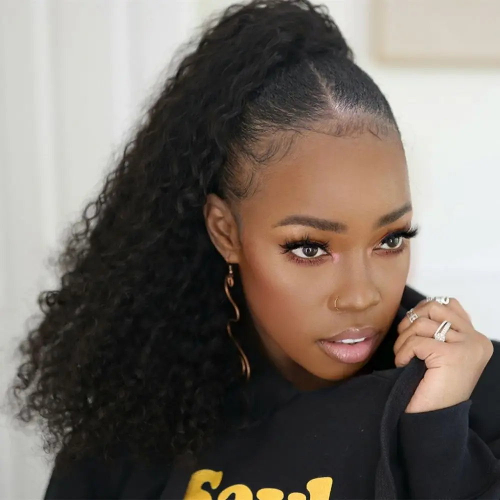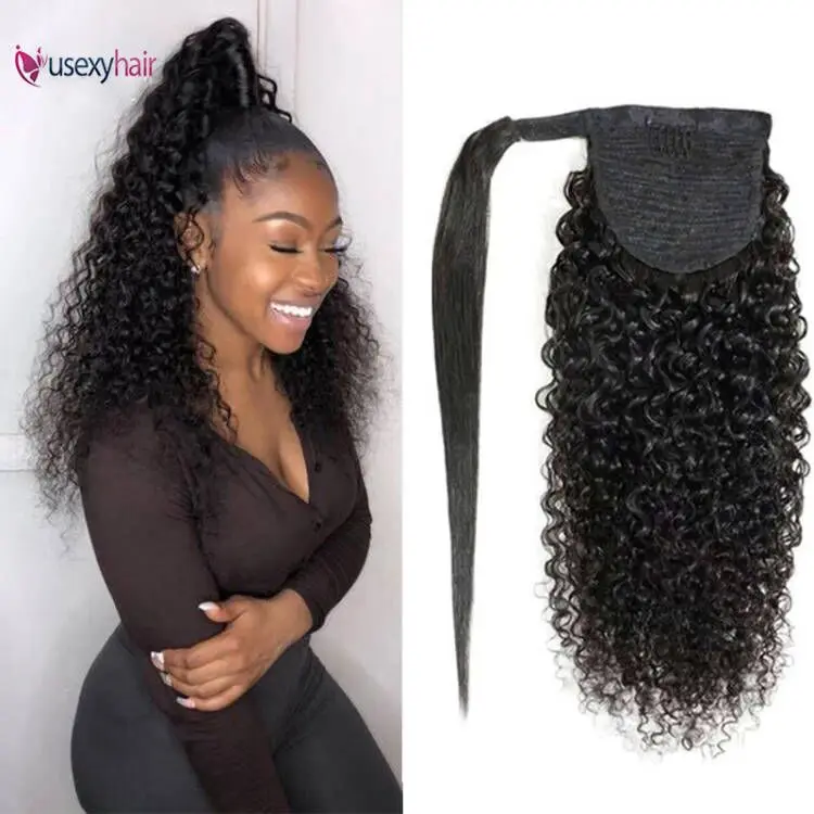 Кудрявый конский хвост Remy бразильские человеческие волосы обертывание вокруг конского хвоста наращивание волос шнурок конские хвосты для черных женщин