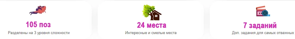 Сколько поз вы сможете назвать по памяти? Наверняка не больше 10! Мы же предлагаем Вам 105 горячих позиций, о которых многие даже не задумывались, 24 интересных места, которые не оставят Вас равнодушными, и 10 дополнительных заданий для самых отважных.