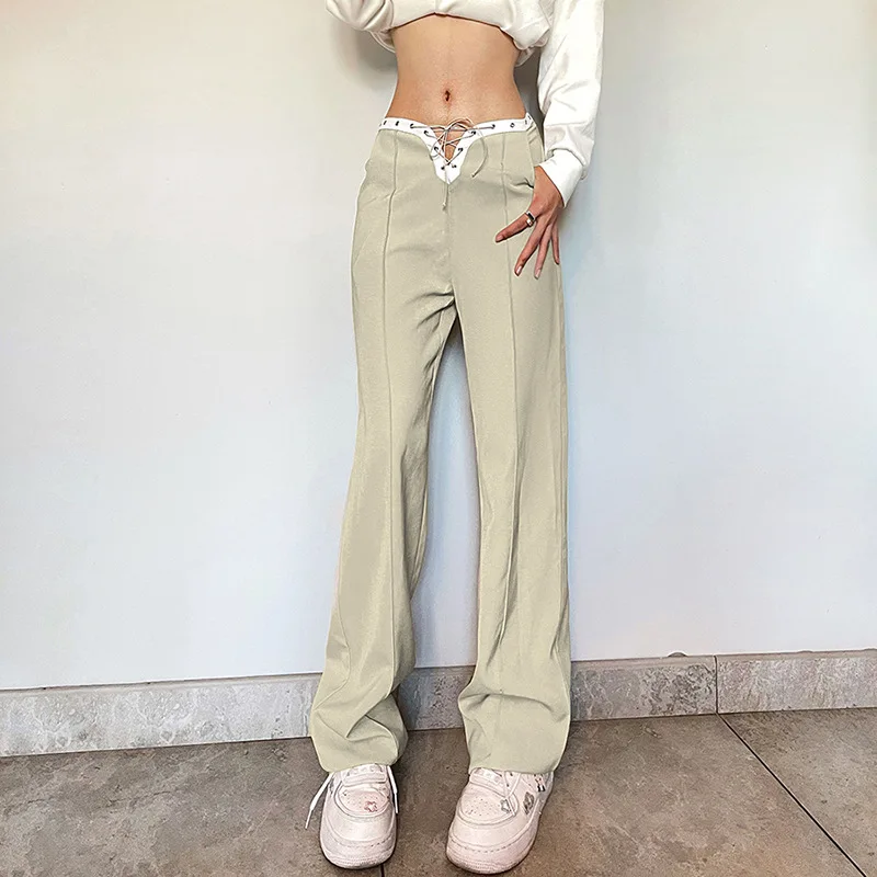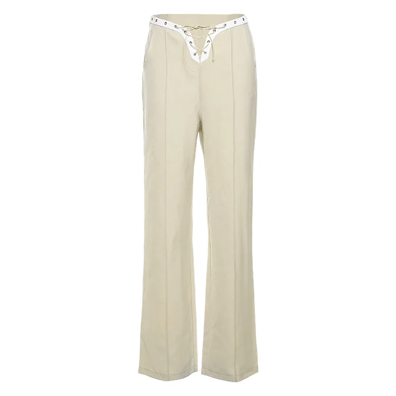 Уличная мода Высокая талия бандажные брюки