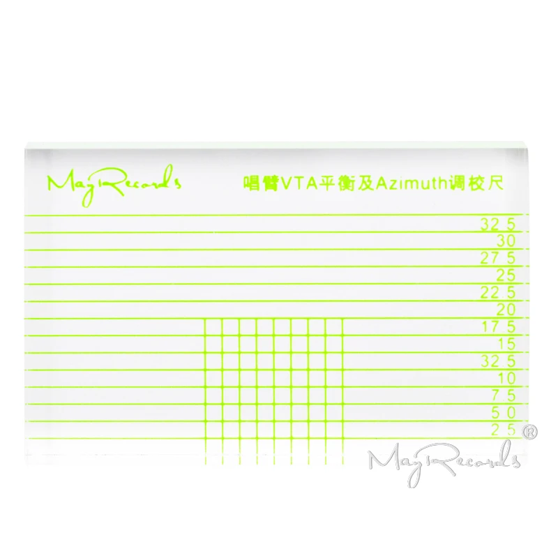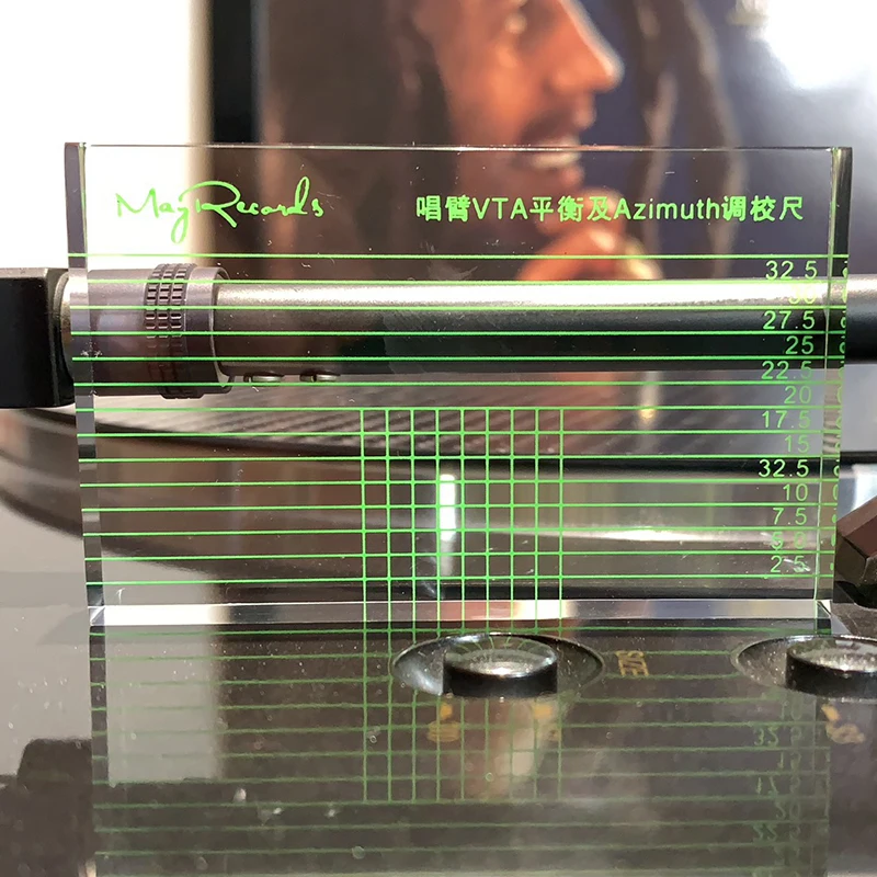 Как использовать VTA balance of singing arm:Переместите голову к середине записи, Опустите руку и сделайте иглу падающей на запись. Поместите регулировочную линейку на боковую часть руки, чтобы увидеть, находится ли рука параллельно горизонтальной линии регулировочной линейки. Если нет, отрегулируйте VTA (i.e. Отрегулируйте высоту руки)