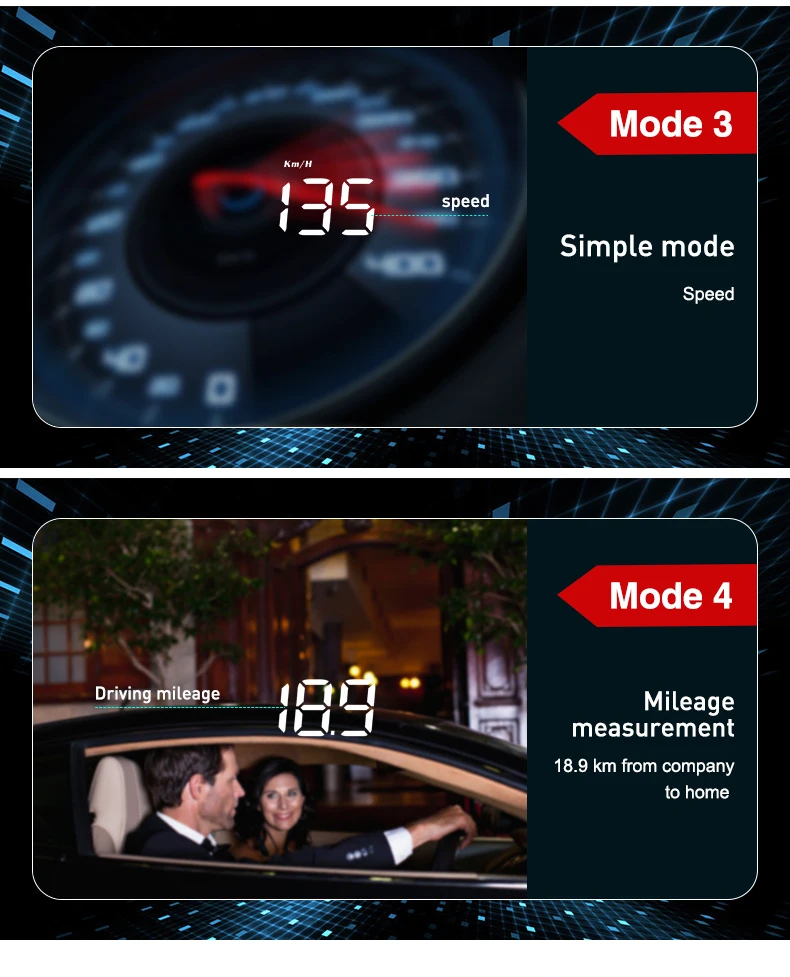 16 видов функций: Скорость, об/мин, температура воды, напряжение, мгновенный расход топлива, среднее потребление топлива, измерение расстояния вождения, напряжение, напоминания о смене, напоминания о усталости вождения, Сигнализация низкого напряжения, сигнализация с высокой температурой воды, сигнализация превышения скорости, сигнализация неисправности двигателя, устранение кода неисправности, свободное переключение между километрами и милями.