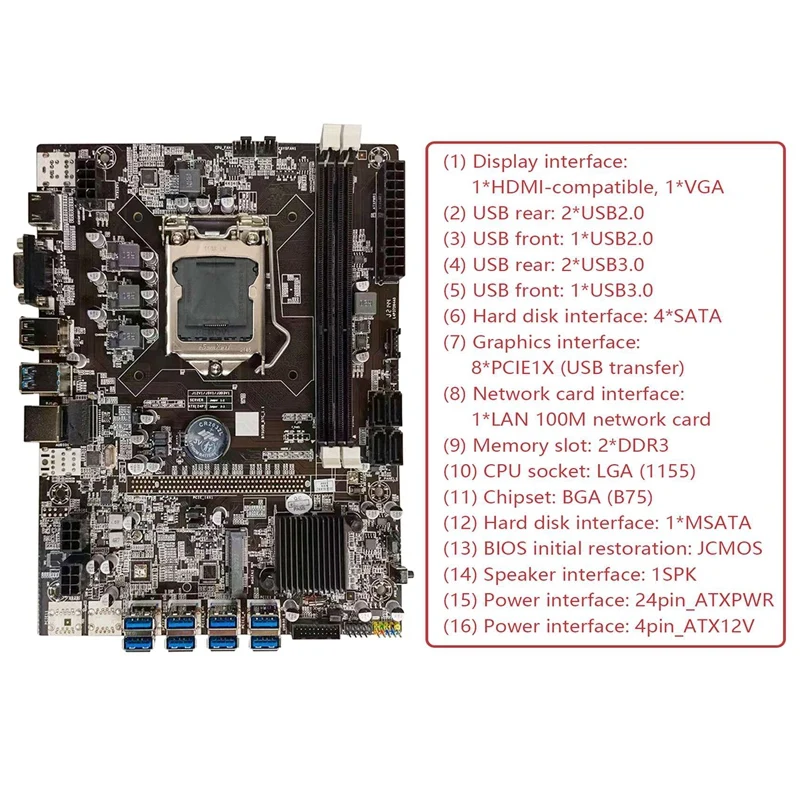 B75 ETH горнодобывающая промышленность материнская плата + Процессор + DDR3 4 Гб 1600 МГц Оперативная память + SATA кабель LGA1155 8XPCIE USB DDR3 B75 BTC Майнер материнская плата