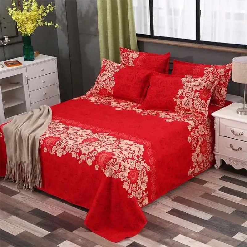 Свадебные красные простыни для двуспальной односпальной кровати, комплекты постельного белья из 3 предметов, Пыленепроницаемая утолщенная саржа, Всесезонная универсальная многофункциональная кровать