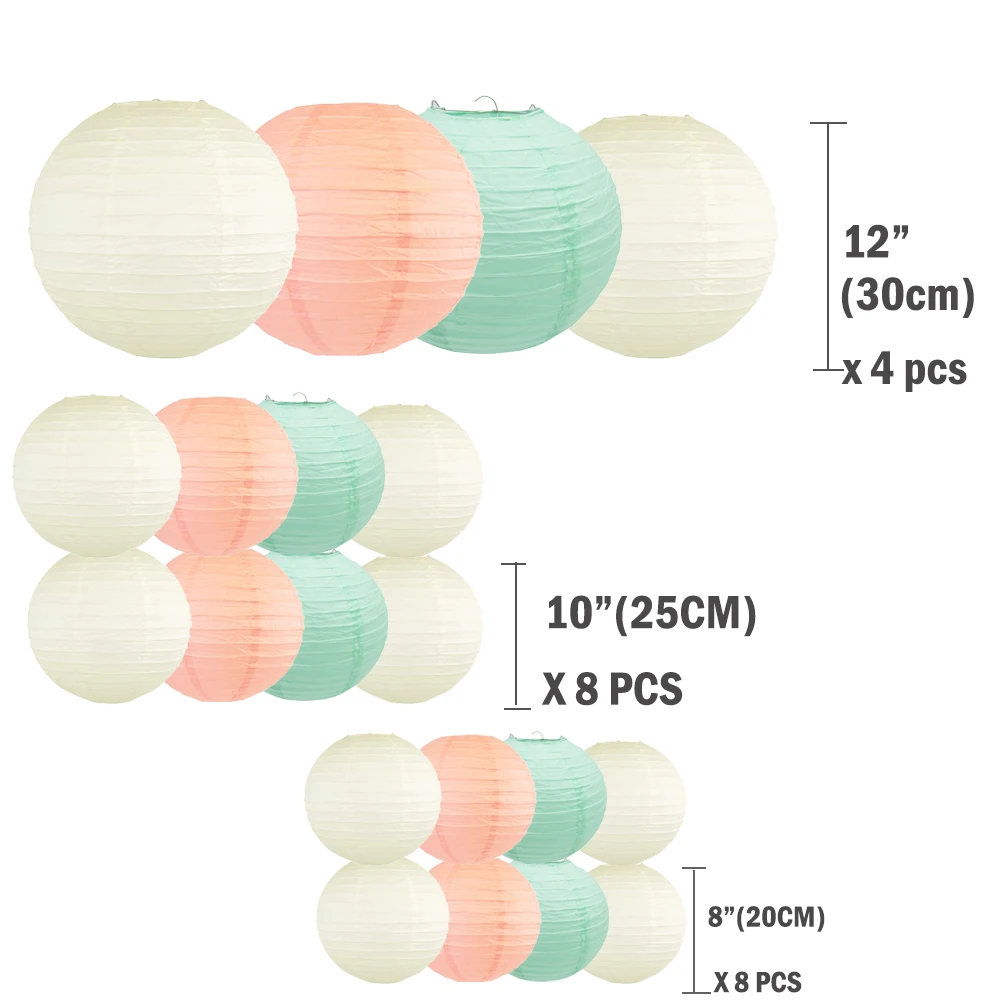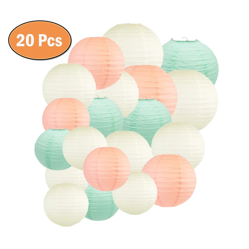Элегантный-наши ручные круглые бумажные фонарики цвета слоновой кости, мятно-зеленого и персикового цветов добавляют элегантную атмосферу в любой комнатной комнате или на открытом воздухе.