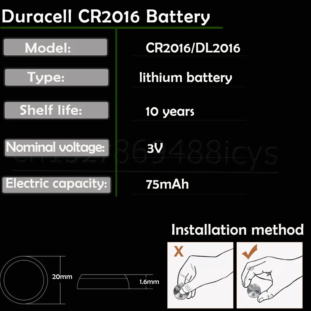 8 шт. Оригинал DURACELL CR2016 DL2016 ECR2016 GPCR2016 75 мАч 3 в литиевые кнопки батареи для монет для часов игрушки часы компьютер