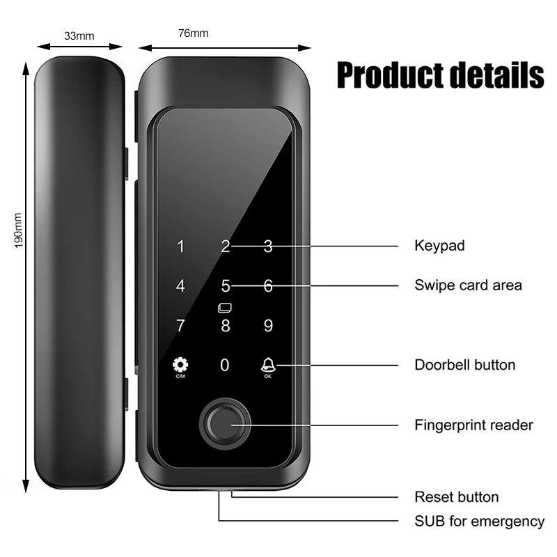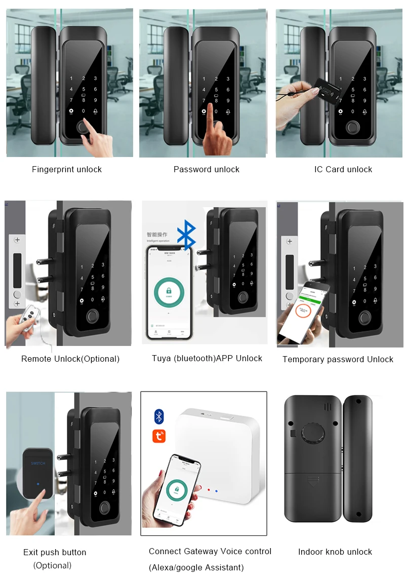 2. 【 8 способов разблокирования: разблокировка отпечатков пальцев, bluetooth-разблокировка Tuya app, разблокировка IC Card, разблокировка клавиатуры,