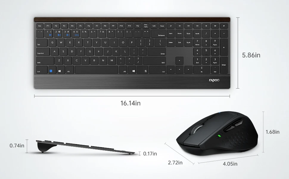 RAPOO 9500M Multi-устройство Беспроводной клавиатура и Мышь комбо, 4,5 мм ультра-тонкая клавиатура Регулируемый 1600 Точек на дюйм оптический Мышь комплект, компьютерная клавиатура для Windows 10/Android/Mac OS