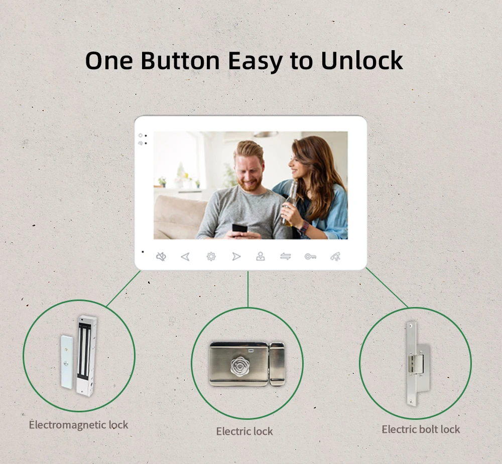 Вы можете открыть дверь через функцию разблокировки монитора с помощью одной кнопки, а также установить время между блокировкой и разблокировкой, что делает вашу семью более безопасной.