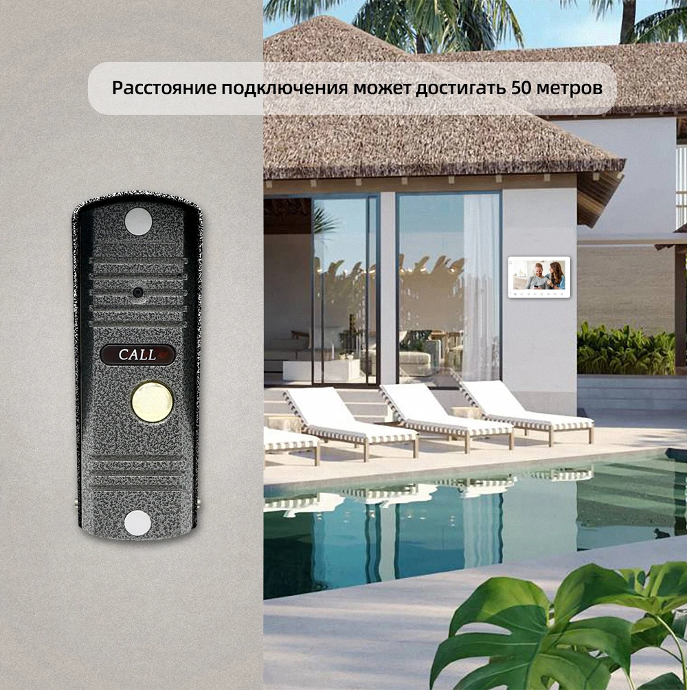 Этот продукт может быть подключен на расстоянии более 50 метров, даже если наружная камера находится далеко от внутренней панели, это не повлияет на качество видео