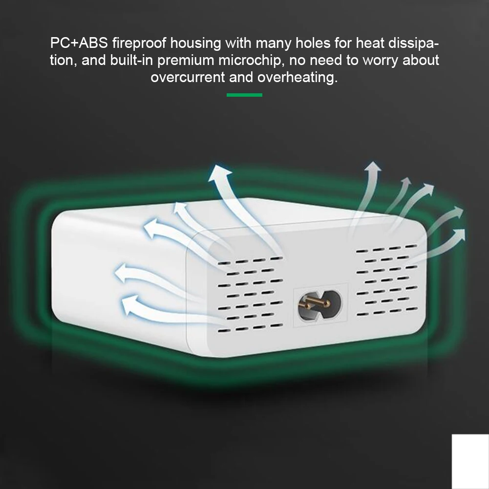 Изготовлен из огнеупорного материала PC + ABS и встроенной системы мульти-защиты и премиальных микрочипов, не беспокойтесь о случае перенапряжения, перегрузки по току, перегрева или коротких замыканий, Идеально защищает ваши устройства.!